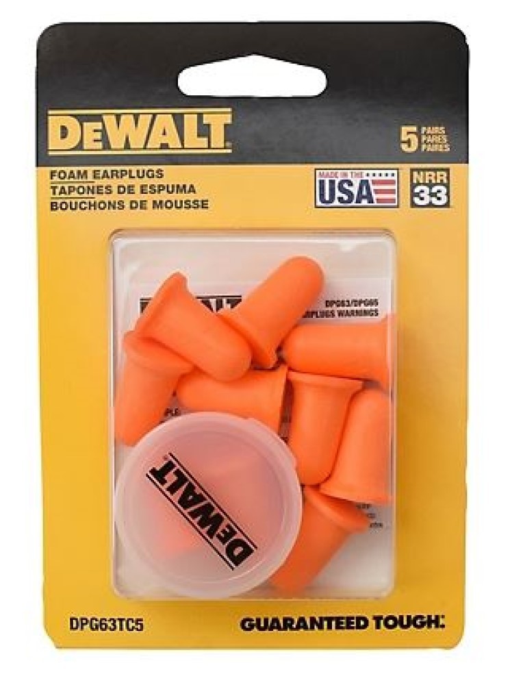 This sale transaction is for a DeWALT DPG63TC5 Foam Ear Plugs Cordless with Case 5 Pair/Pack Orange Large. Included exactly what is pictured.