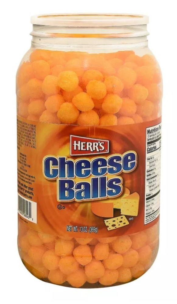 Cheese balls provide mouth-watering flavor Barrel contains 13 oz. of cheese balls
