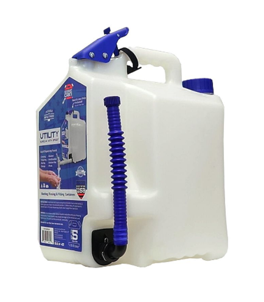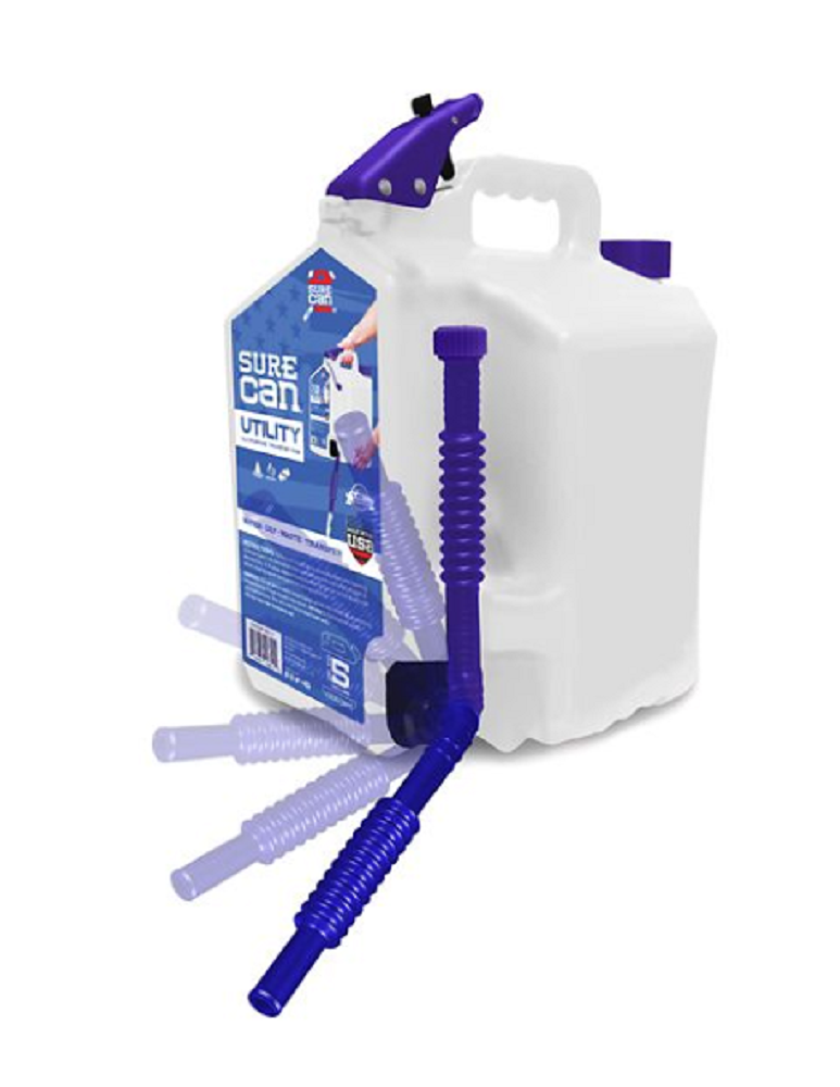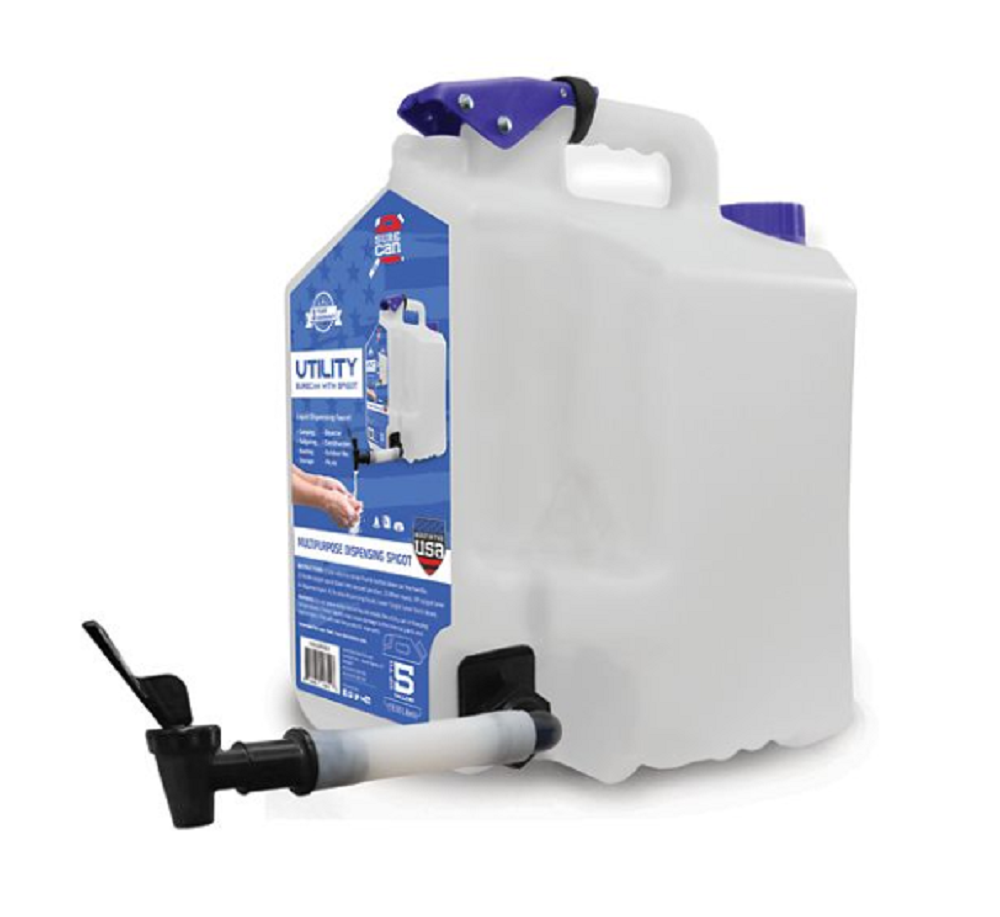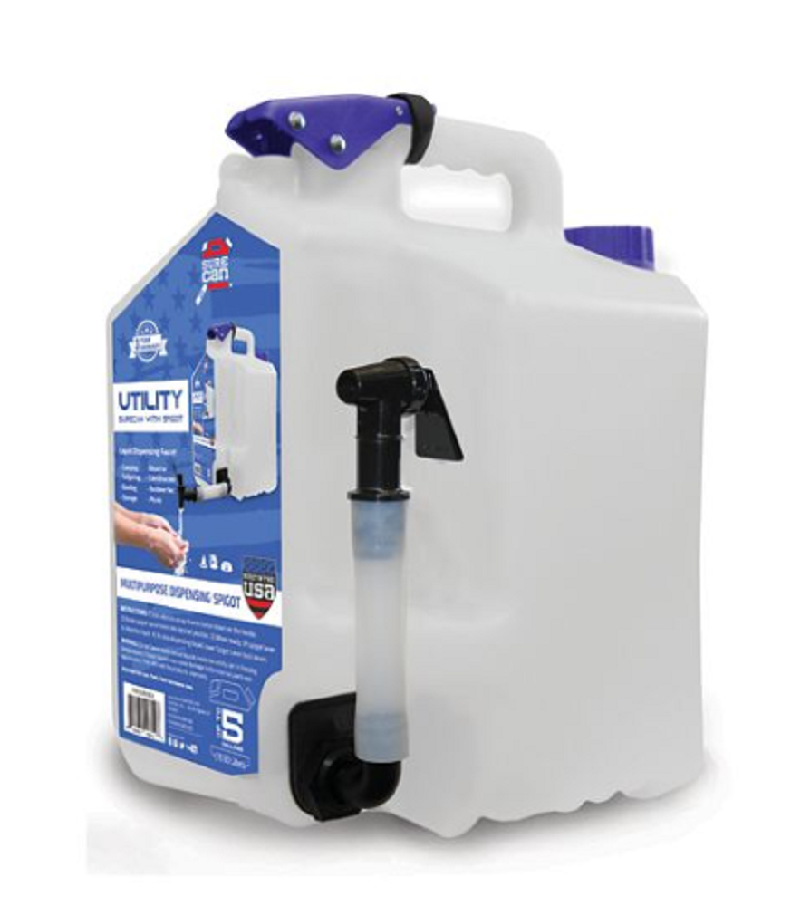 PORTABLE WATER STATION The Utility SureCan with Spigot Spout is the most versatile all-purpose water jug on the market. Built with our innovative bottom feed technology and legendary toughness, the rotating spigot provides a fast convenient dispensing experience that is unmatched! This Utility Can comes with both a spigot and a spout that easily switch out to make it even more versatile. BPA Free with all food grade materials make it safe for storing and easily dispensing liquids. This can is perfect for drinking water, washing hands, rinsing food or objects, filling pet bowl and many other applications.