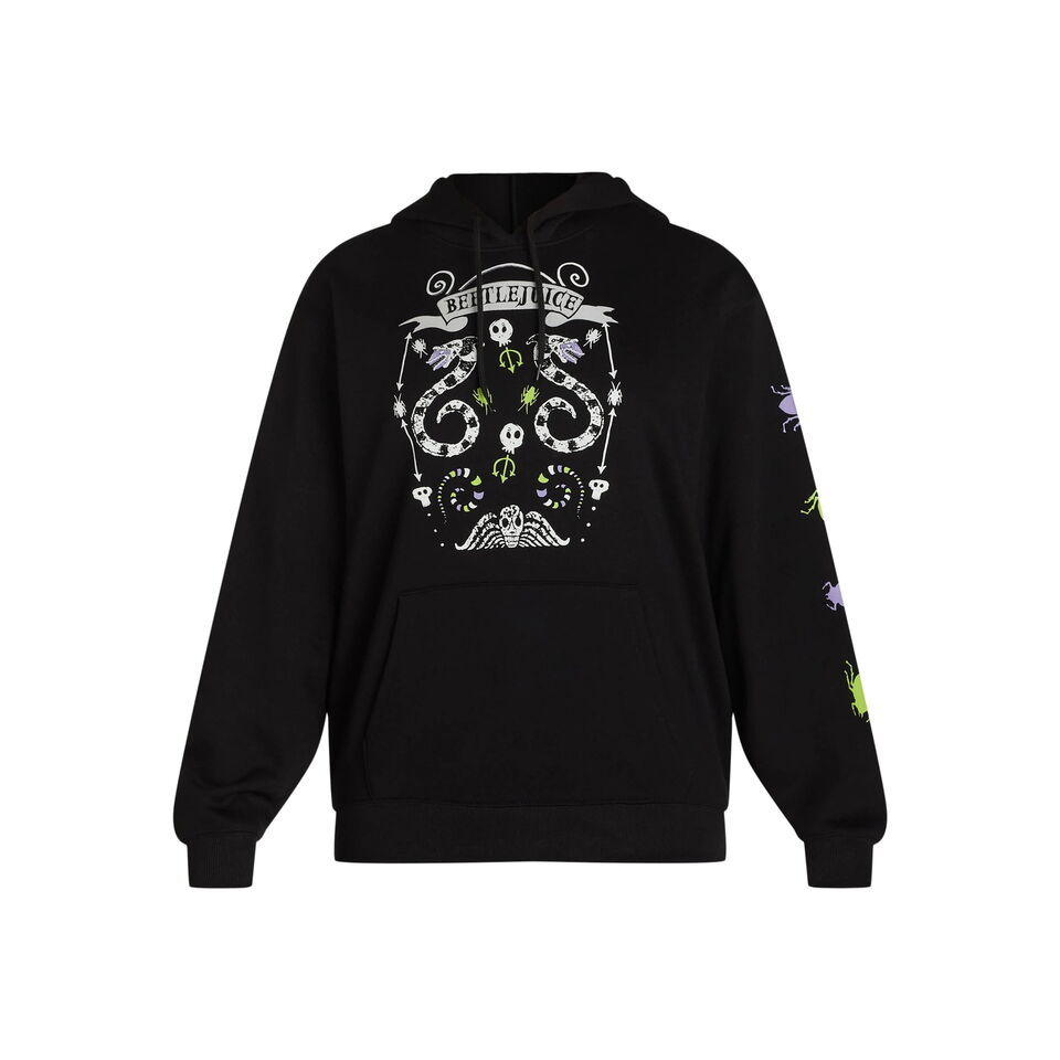 So on-trend and eerily stylish, this Beetlejuice Graphic Print Hoodie is a must-have for Halloween and beyond. This super-soft, cozy hooded sweatshirt is designed in a relaxed fit for roomy comfort you can wear on the go or lounging at home. Features dynamic prints inspired by the iconic Tim Burton movie and upcoming sequel. A perfect pick for any occasion, this graphic hoodie makes a great gift any Beetlejuice fan will appreciate.
