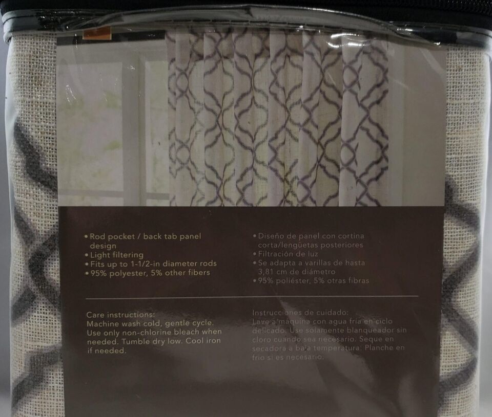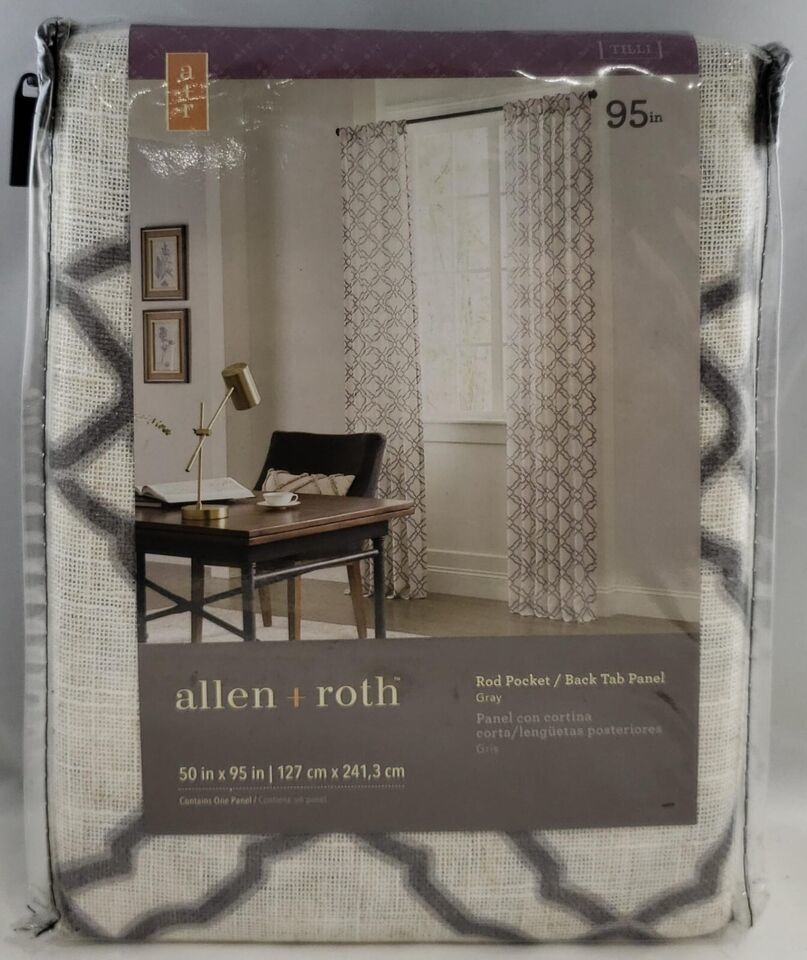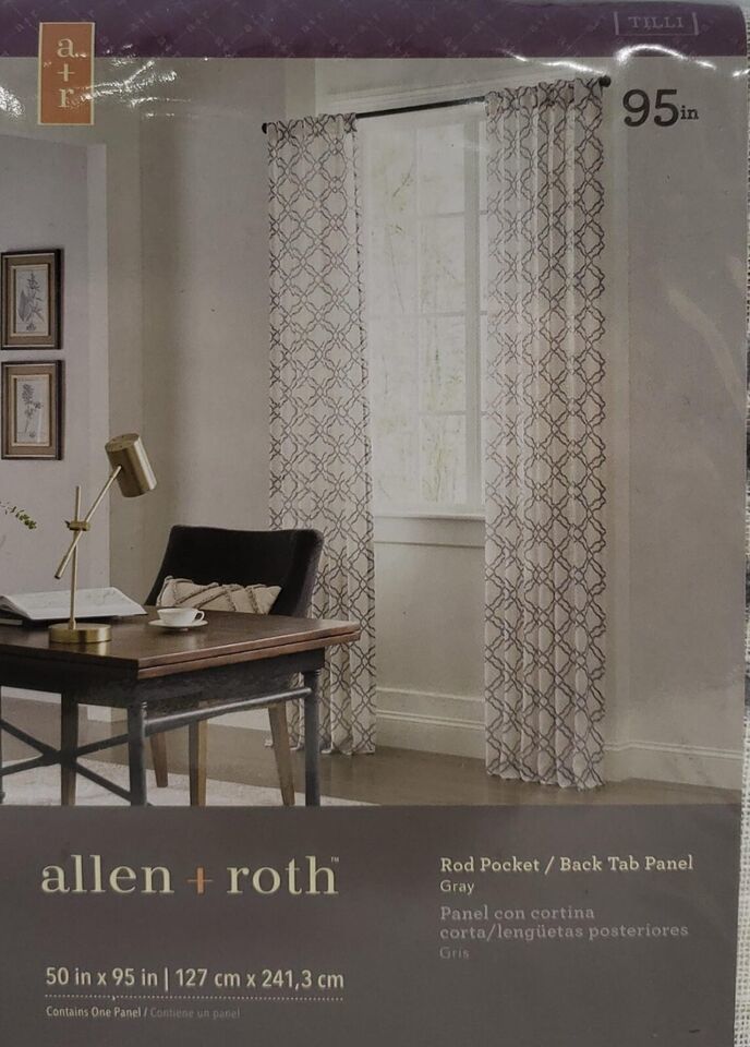 Elevate your window with the Allen + Roth Light Filtering Rod Pocket Back Tab Window Curtain Panel. Made of a 95% Polyester, 5% other fibers blend, this window curtain panel features a tonal lattice trellis print on textured slub yarns giving the curtain a beautiful woven look. Can be hung via the rod pocket or by using the back tabs. Curtain has a 3? Rod Pocket, curtain rod sold separately. Machine Washable.