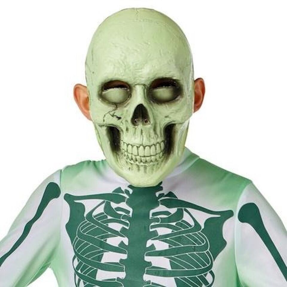 Kids can light up the night in this Glow-in-the-Dark Atomic Skeleton Costume! Perfect for a spooky and fun Halloween, this skeleton outfit includes a skull mask, bones jumpsuit, and matching gloves that give off an eerie green glow.