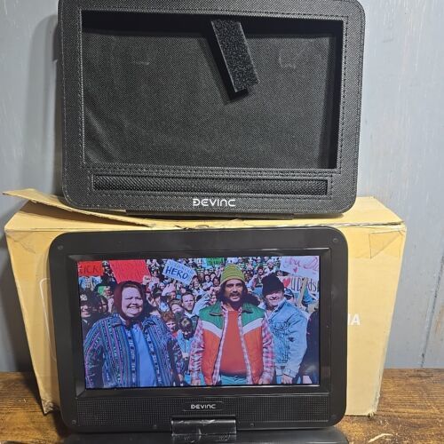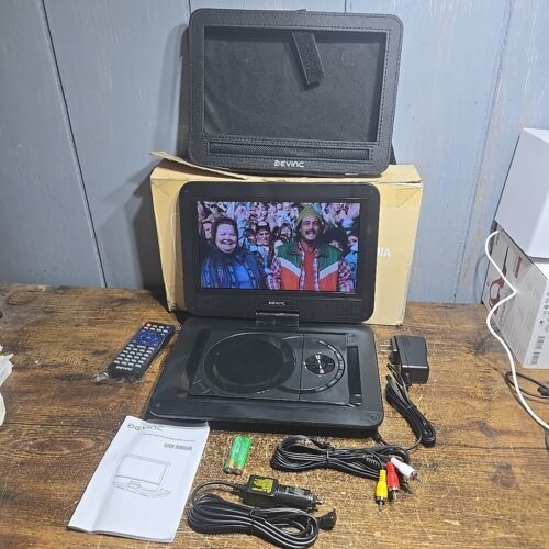 Enjoy your favorite movies on-the-go with this 12.5" portable DVD player from DEVINC. Featuring a 10.5" HD swivel screen, you can easily switch between landscape and portrait modes for a comfortable viewing experience. This device comes with a rechargeable battery that lasts up to 5 hours, so you can watch your movies without worrying about charging.