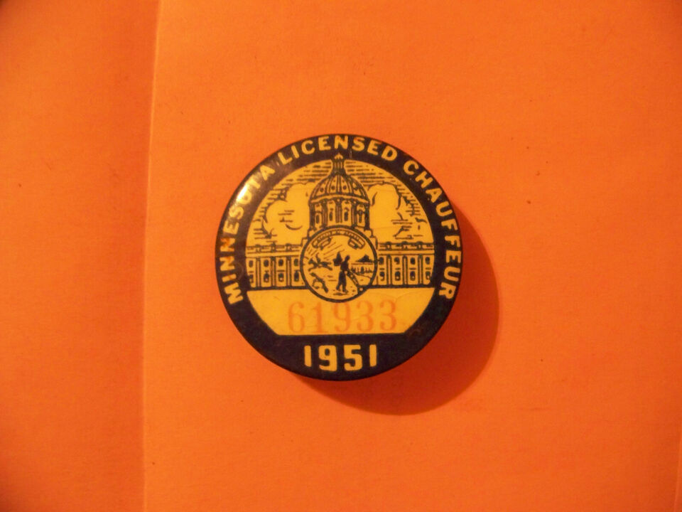 USED!! Vintage!! 1951 MINNESOTA LICENSED CHAFFEUR Pin, FREE SHIPPING US ONLY!!