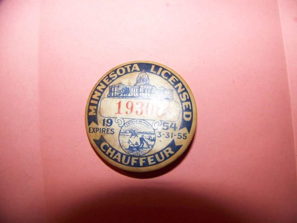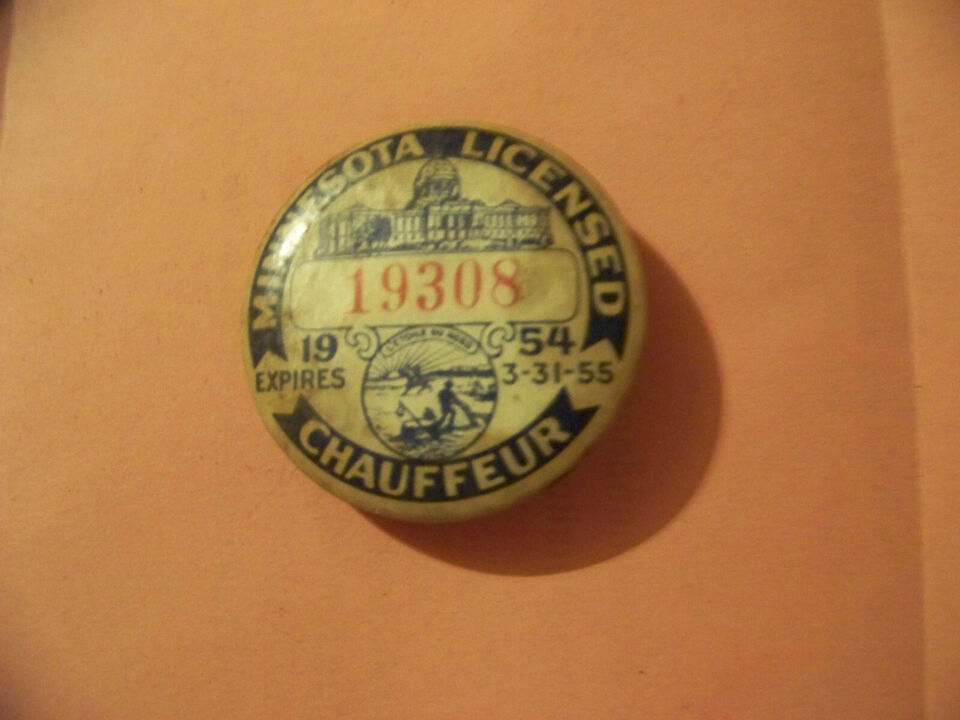 USED!! Vintage!! 1954 MINNESOTA LICENSED CHAFFEUR Pin, FREE SHIPPING US ONLY!!