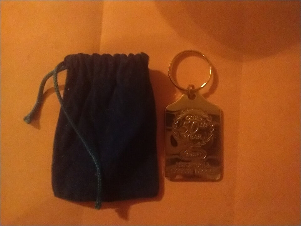 1987 Kraft Key Ring Macaroni & Cheese Dinner Brass Key Chain Our 50th Year