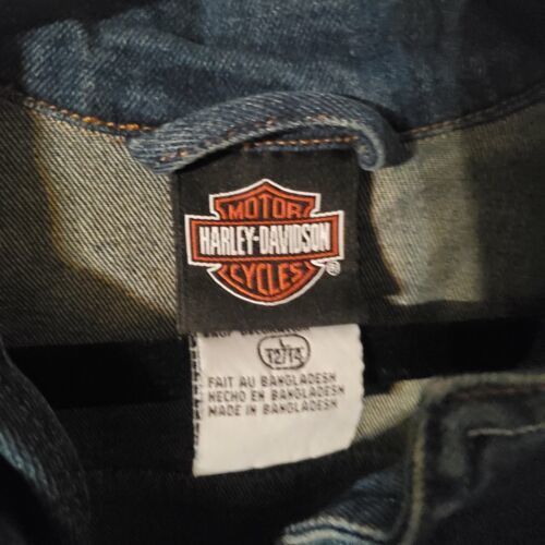 Harley Davidson Youths Button Up Jean Jacket Size L 12/14 Blue.