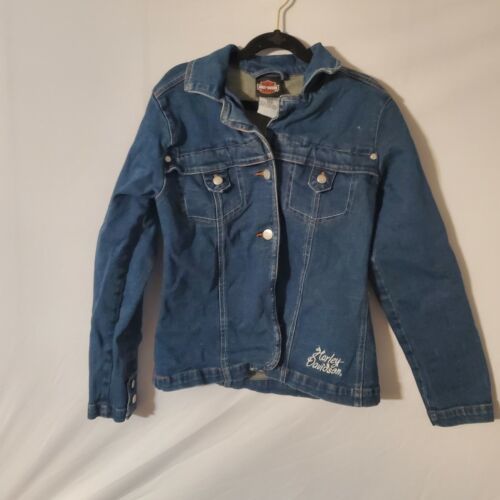 Harley Davidson Youths Button Up Jean Jacket Size L 12/14 Blue