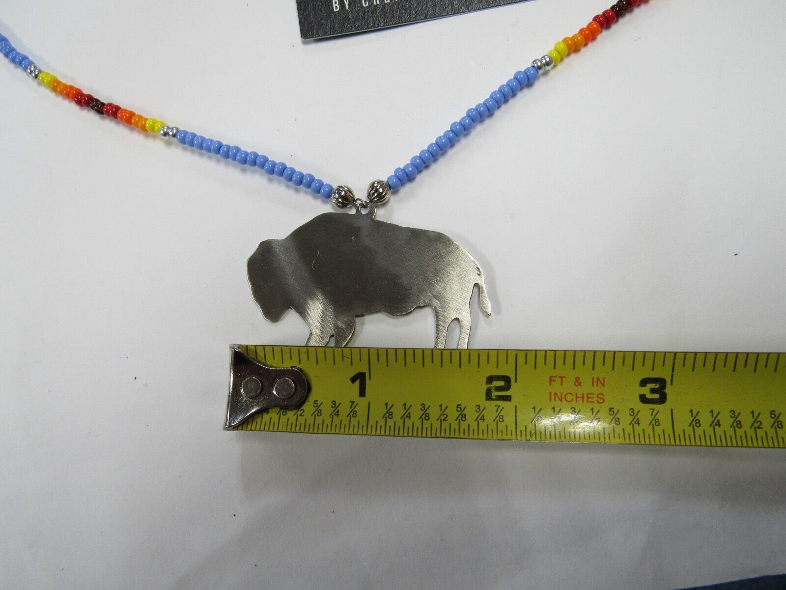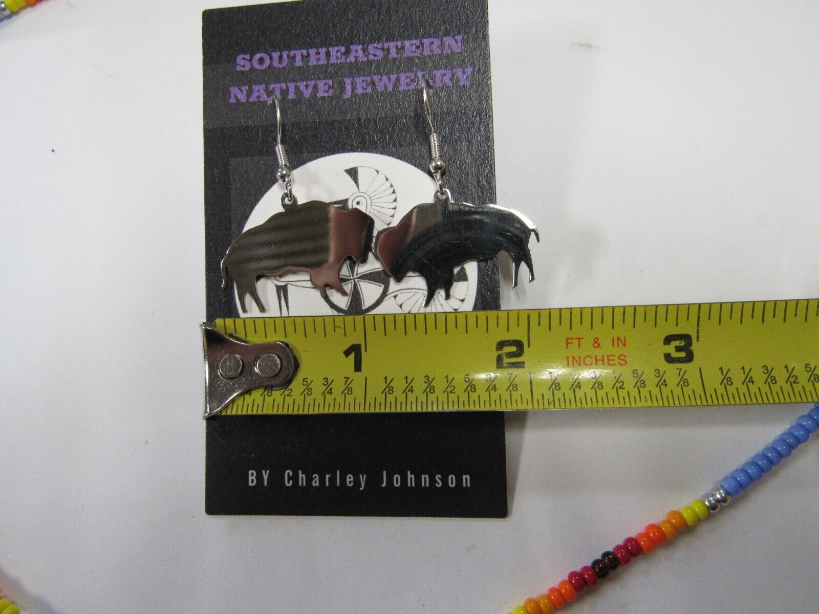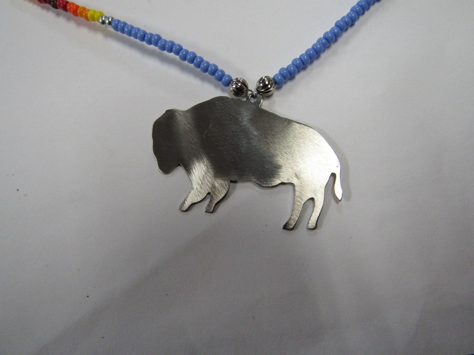 This is new in very good condition, never been worn, silver buffalo on a beaded necklace with matching earrings.