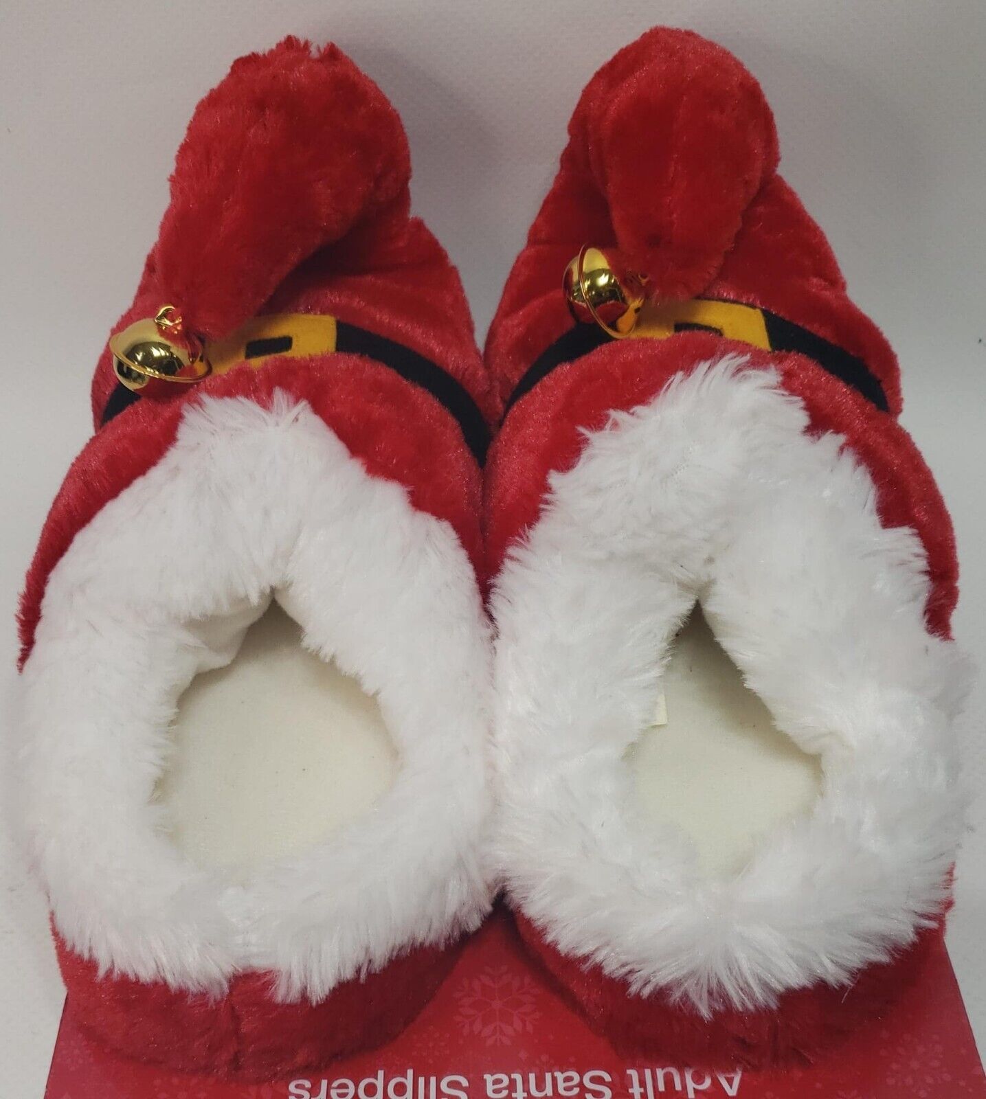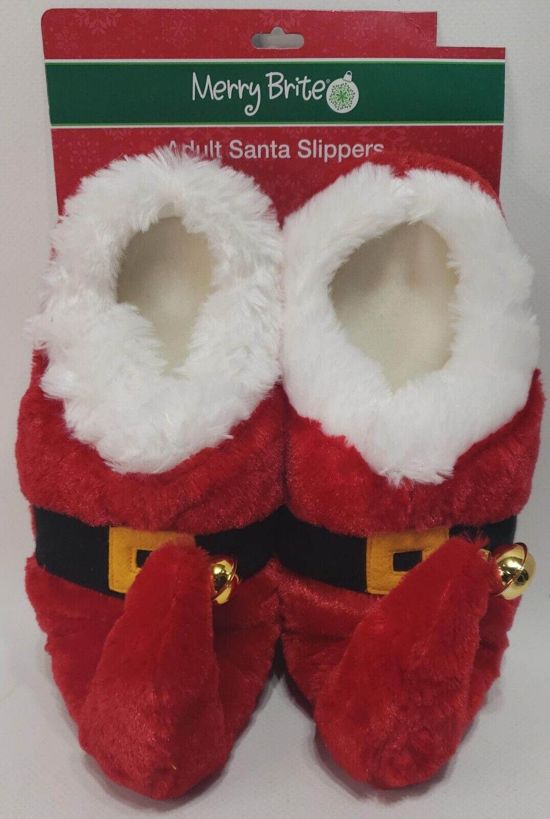 Merry Brite Adult Unisex Santa Slippers W/ Bells, Red Size M(7-8)