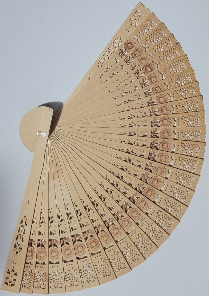 You are Buying a Brand New And Factory Sealed Natural Wood Large Lace Floral Folding Hand Held Plastic Chinese Fan.... Length 9 inches; Opened Width 16.5 inches, party, home decoration, wall decoration, festival season, school play, tea party, Halloween costume, dancing, wedding, prom, pageant, cosplay or any other special occasion. These floral folding hand fans are made of Natural Wood with luxury printed vintage flowers, Natural Wood around edge, metal U ring, and hollow carved Natural Wood staves.
