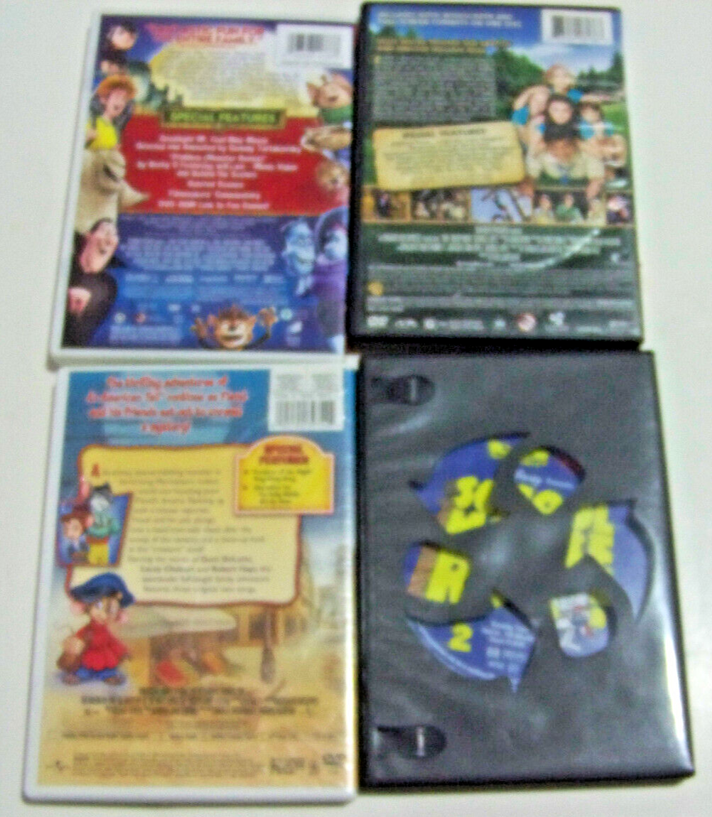 YOU WILL GET THE 5 DVD'S PICTURED: HOTEL TRANSYLVANIA, MR. TROOP MOM, AN AMERICAN TAIL- THE MYSTERY OF THE NIGHT MONSTER AND DISNEYS SCHOOL HOUSE ROCK DISC 2 ONLY. SOLD AS-IS NO RETURN.