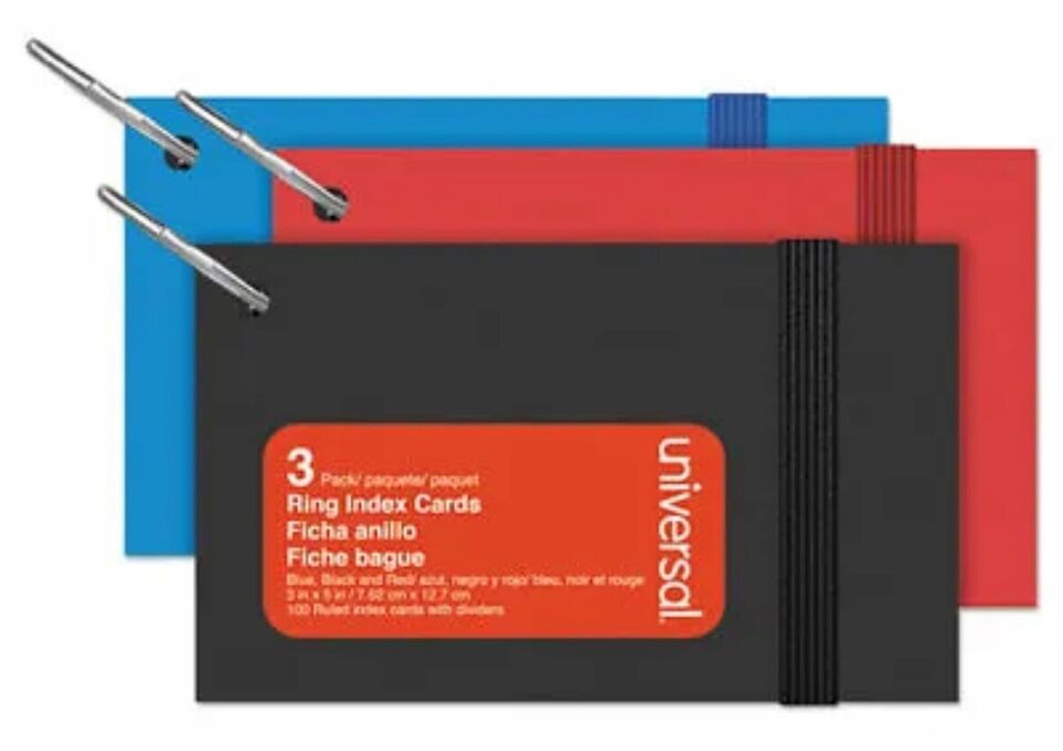 3-pack Universal Ring Index Cards, 3" X 5", White, 100/Pack. Condition is New. Shipped with USPS Ground Advantage.