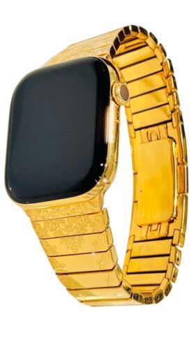Original Apple Watch Series 10 (2024 Release) customized and professionally gold plated by De Billas with an industrial grade of authentic 24 Karat Gold.