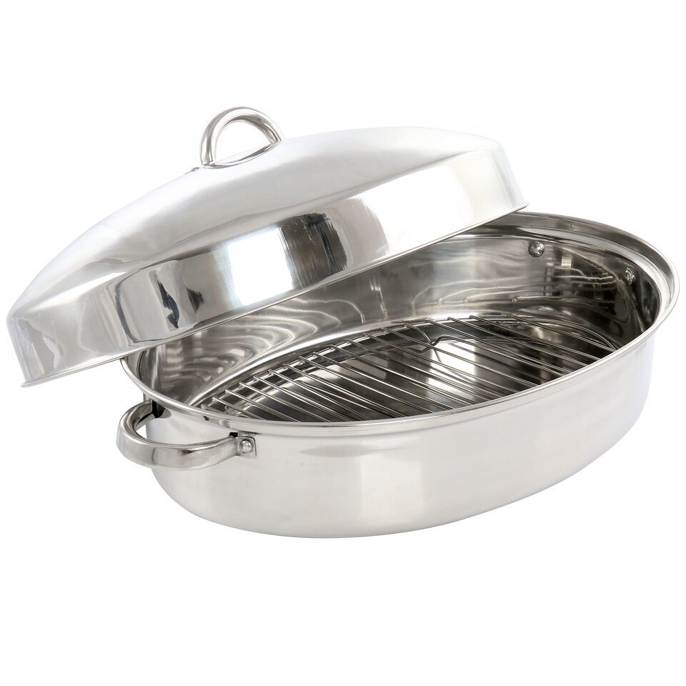 Gibson Home Hutchinson 18 Inch Oval Stainless Steel Roaster with Rack