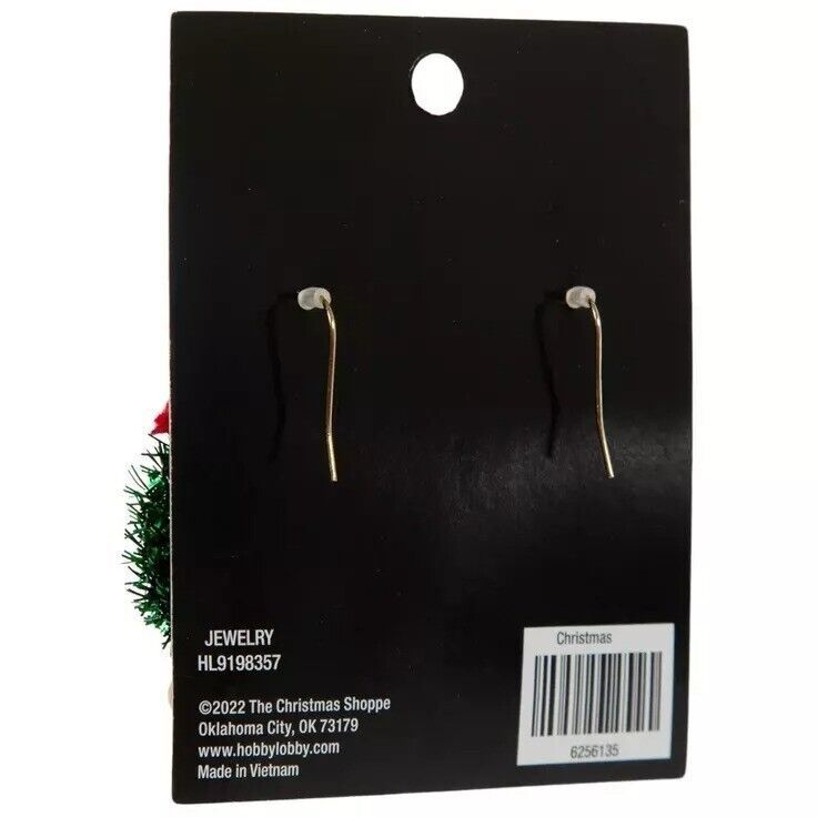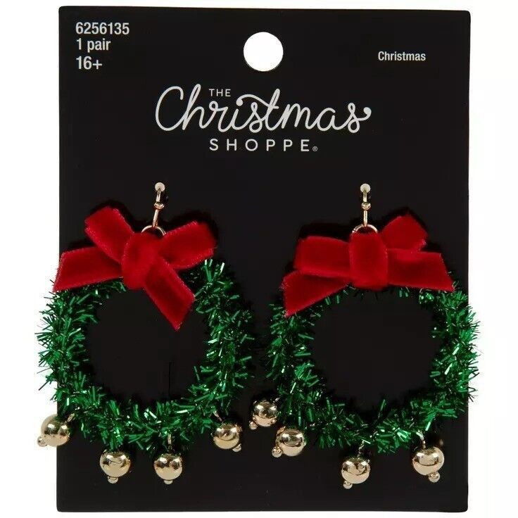 Look fashionably festive by wearing these Wreath Earrings. These earrings feature tinsel wreaths topped with red velvet bows. At the bottom of the wreath, there are mini ornaments to tie the look together. Wear them with complementary pieces to complete a merry holiday look!