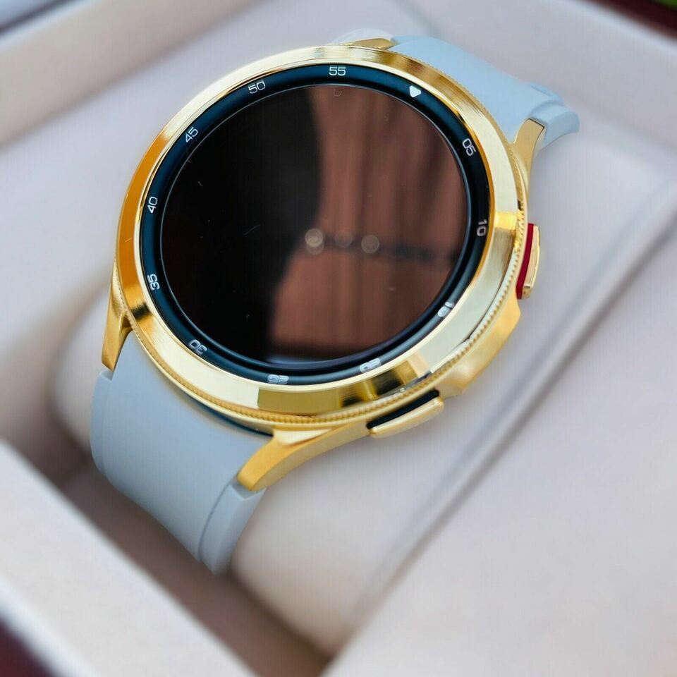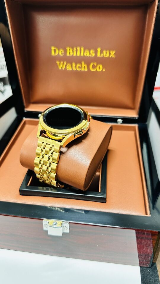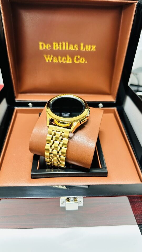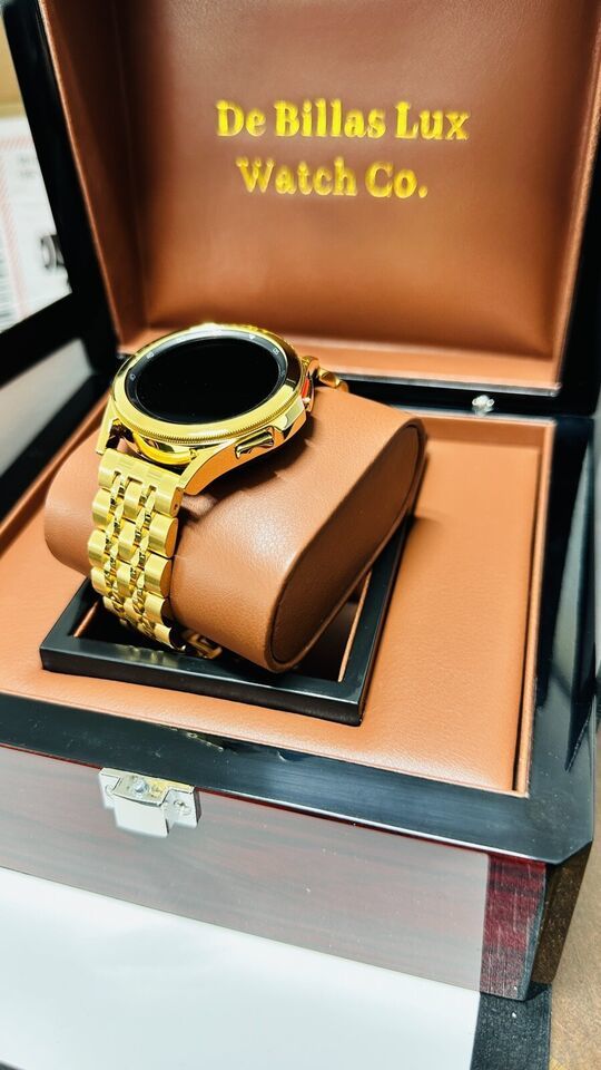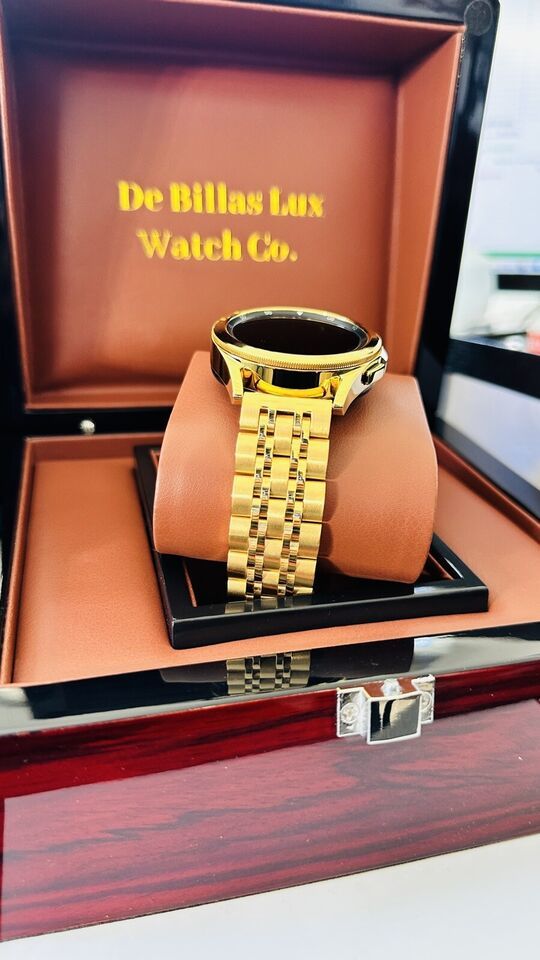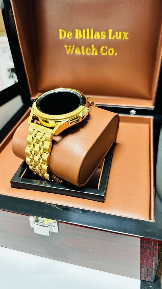 Original Samsung Galaxy Watch 2023 release stainless steel customized and professionally gold plated by De Billas Lux with an industrial grade of authentic 24 Karat Gold.