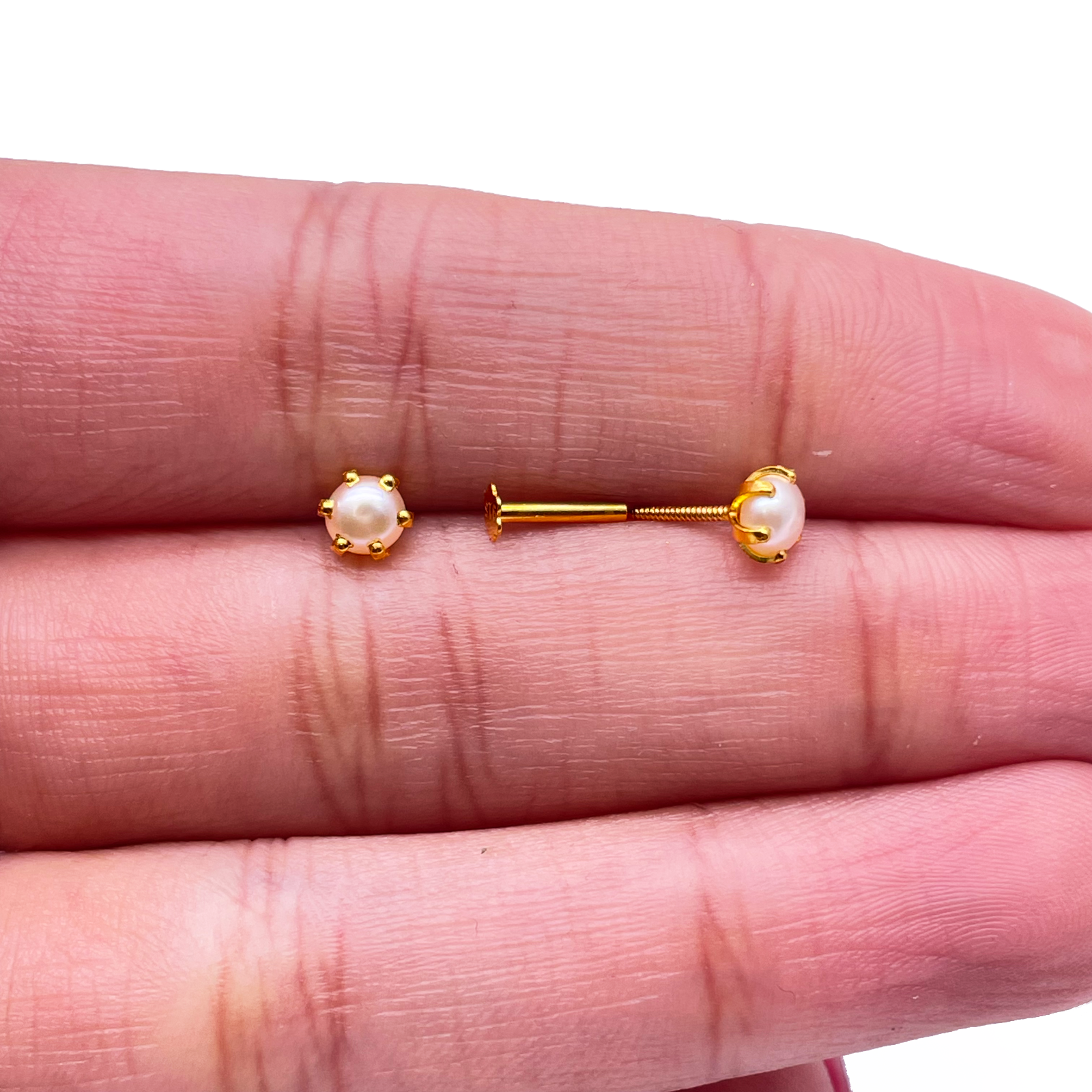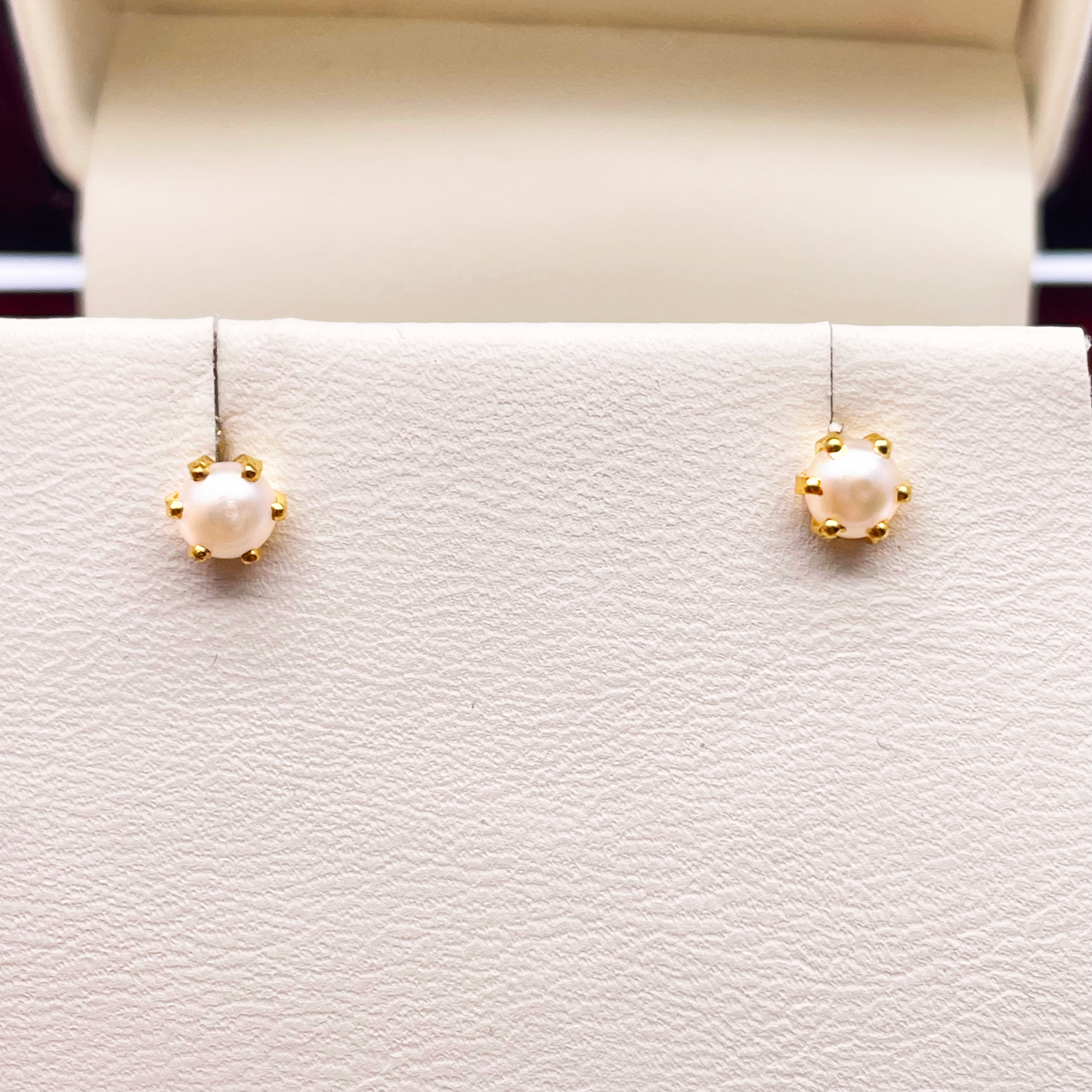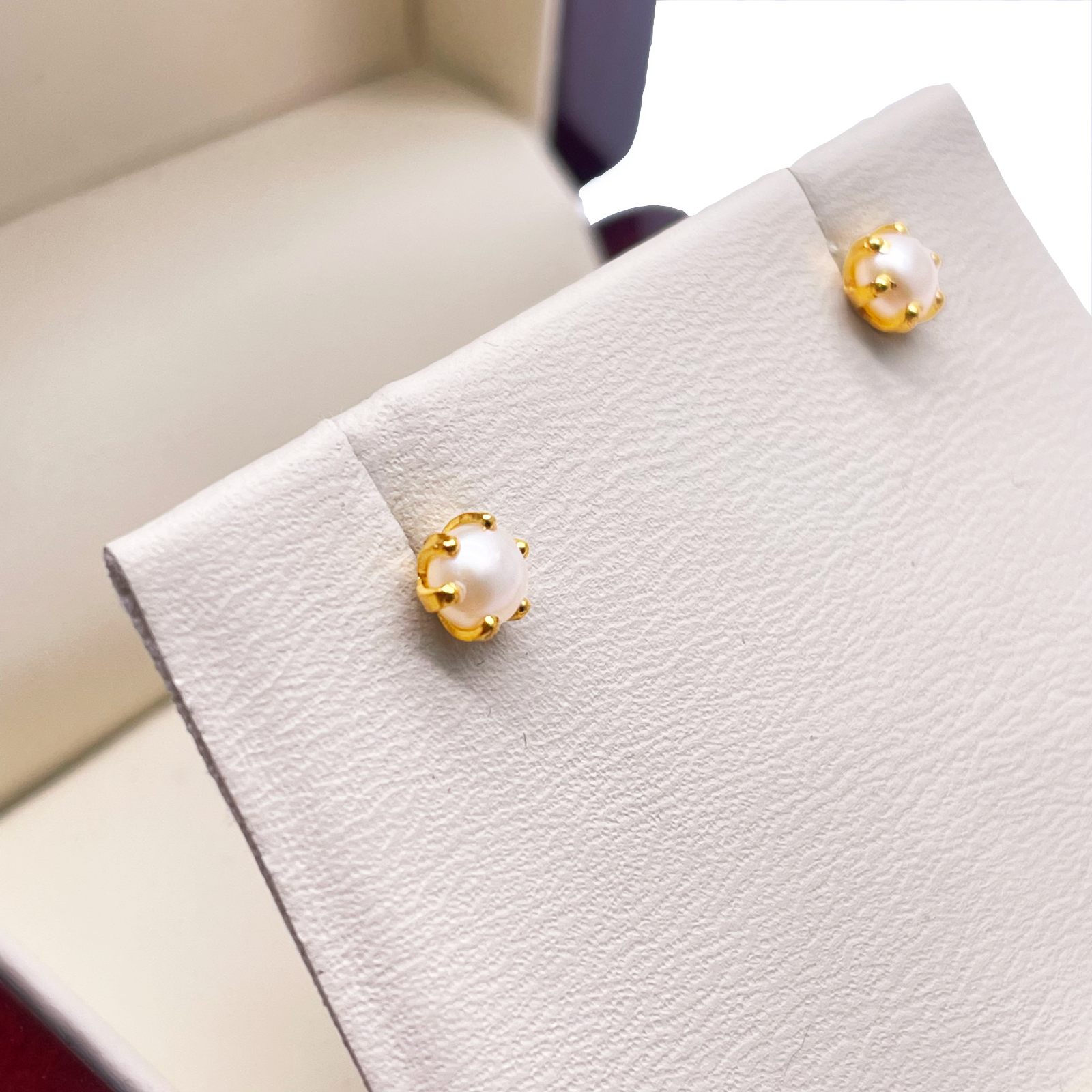 22ct Yellow Gold Children's Freshwater Pearl Claw Stud Earrings 4.3mm