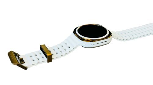- Free White Rubber Band with Custom Anodized Gold Buckles (Samsung branded)