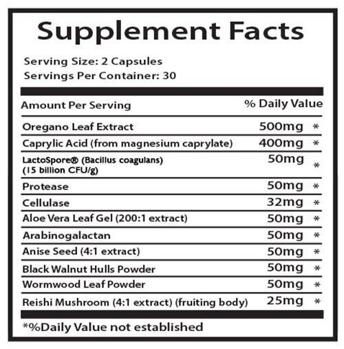 Black Walnut Hull, Wormwood, Oregano Leaf Powder, Aloe Vera Leaf |