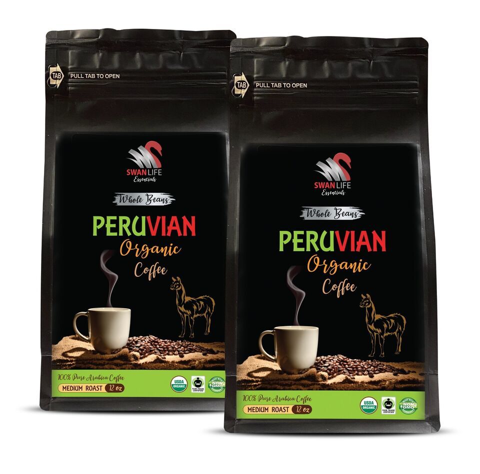 Farm-to-Cup Coffee - PERUVIAN WHOLE BEANS ORGANIC COFFEE - High-Altitude Coffee 2Pack