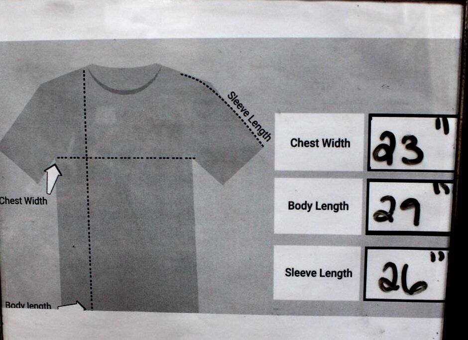 Chest Width = 23 inches, Body Length = 29 inches, Sleeve Length = 26 inches