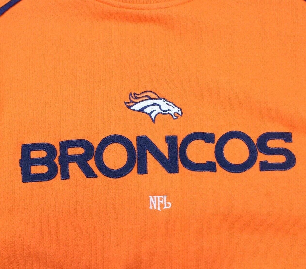 NFL Broncos Spell Out Horse Logo Orange Pull Over Sweatshirt Medium