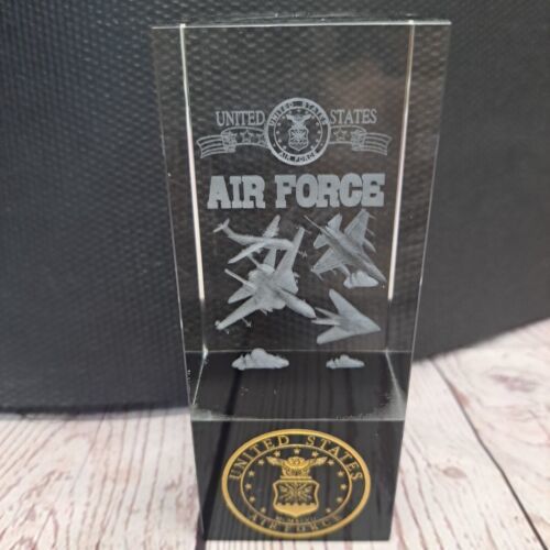 United States Air Force 3D Etched Glass Block Paper Weight 5in X 2in Gold Seal