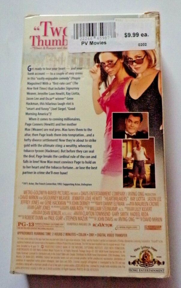 Heartbreakers Sigourney Weaver Jennifer Love Hewitt Ray Liotta Jason Lee VHS