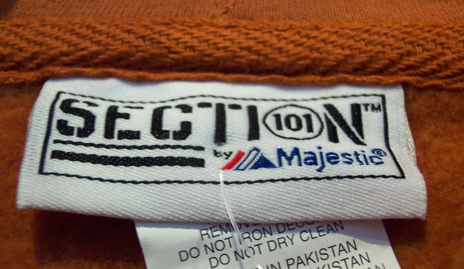 This is a UNIVERSITY OF TEXAS LONGHORNS HOODED SWEATSHIRT. It is a Size LARGE and is NEW with the Tag. It is 25 inches from armpit to armpit and 29 inches in length. Officially Licensed Section 101 Sweatshirt made by MAJESTIC. Combine auctions to save on shipping. AGD2 DJ