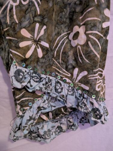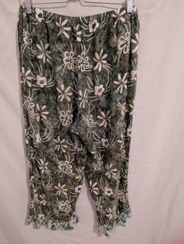 Batik Frivolous by La Blend Pants 0X Large XL Floral Art Sequin Indonesia Green