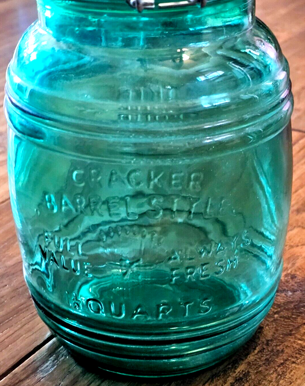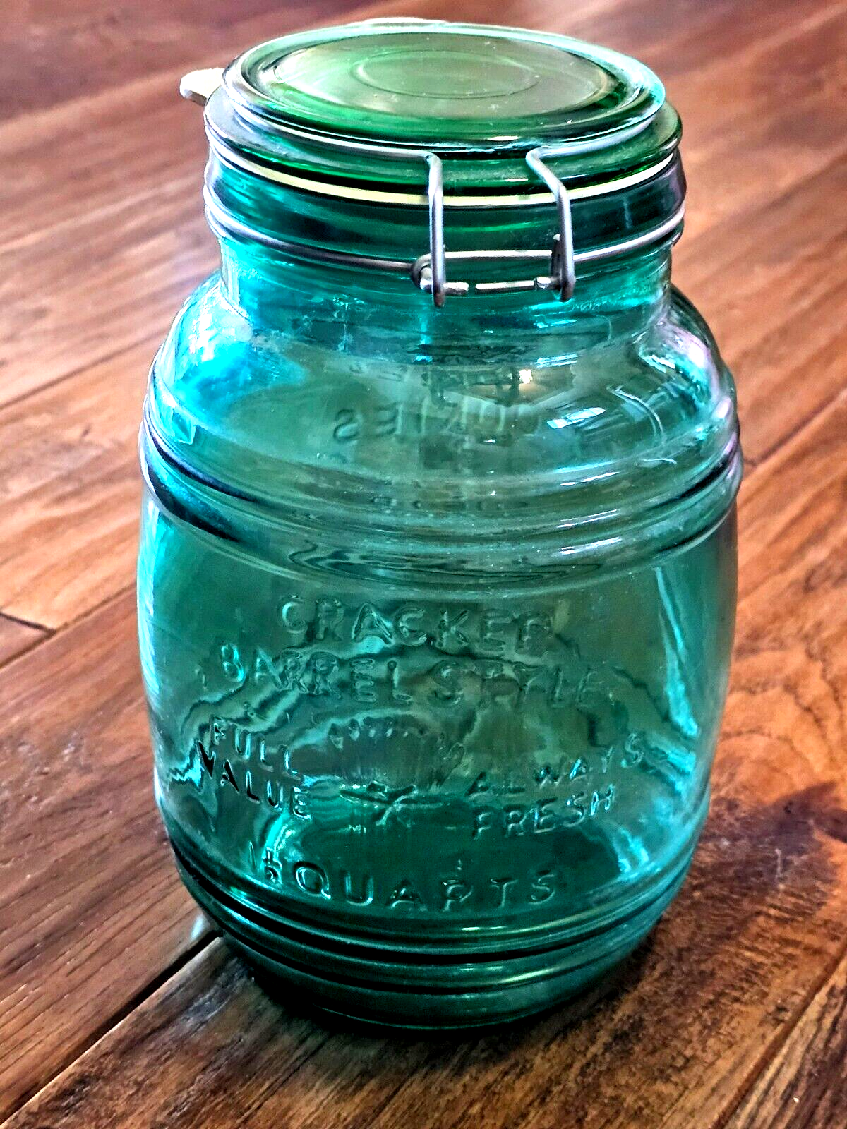 Cracker Barrel Glass Canister Green Jar 1~1/2QT Cookies Flour Sugar Rubber Seal