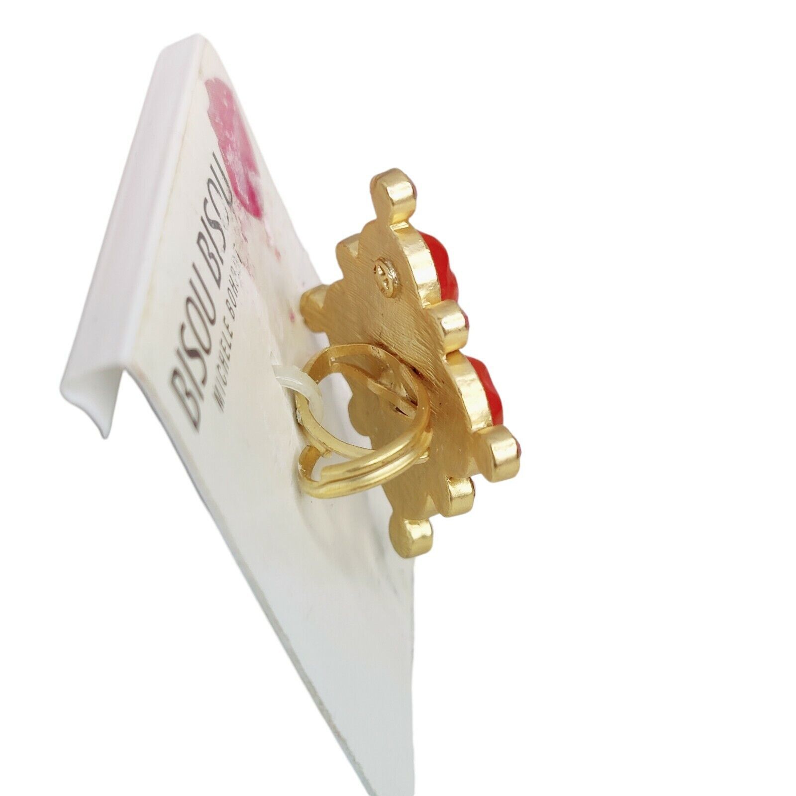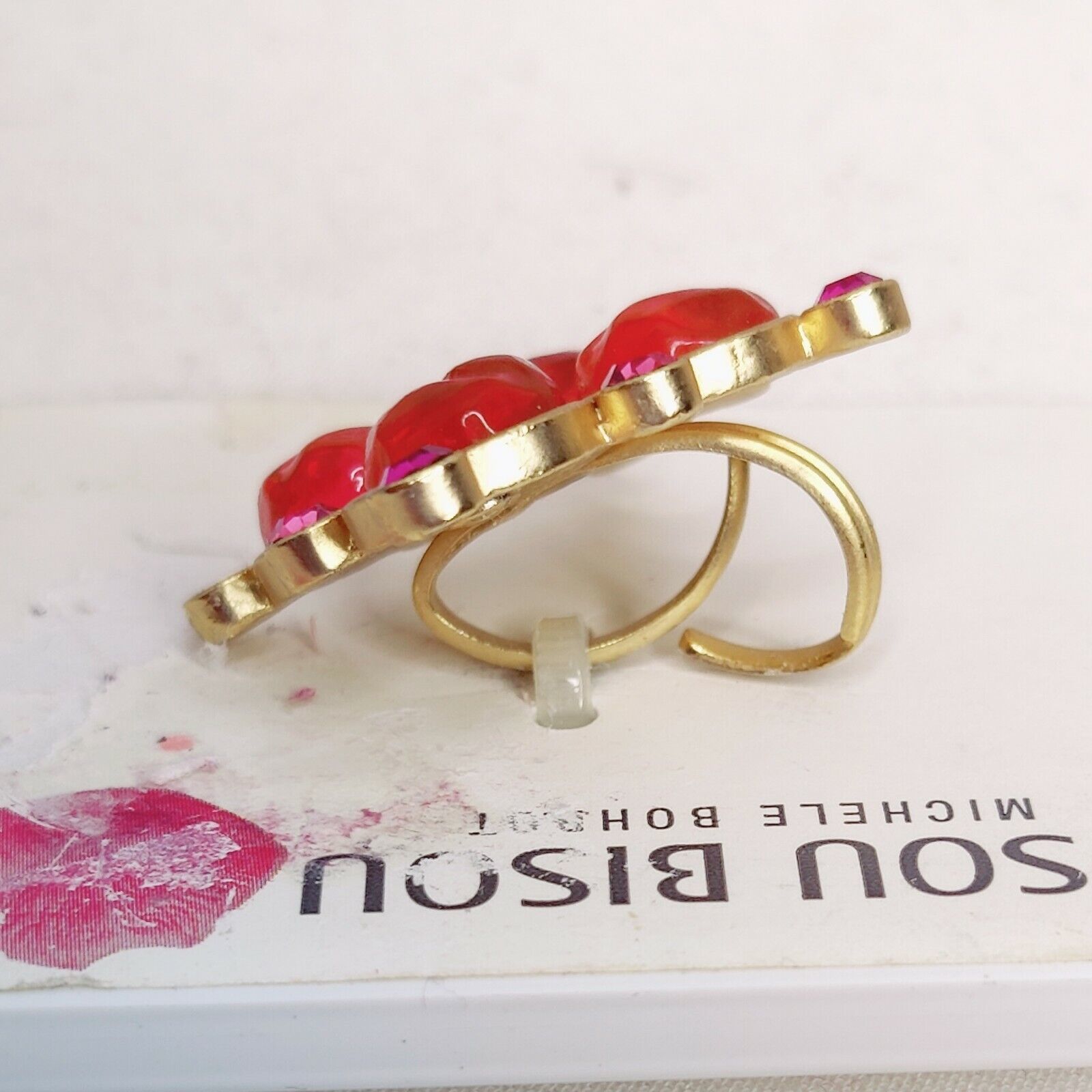 Bisou Bisou Vtg Red Orange Sizable Gold Tone Cocktail Ring 90s Costume Jewelry