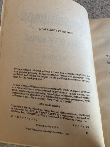 Goosebumps #25 Attack of the Mutant 1st Printing R.L. Stine Copyright 1994