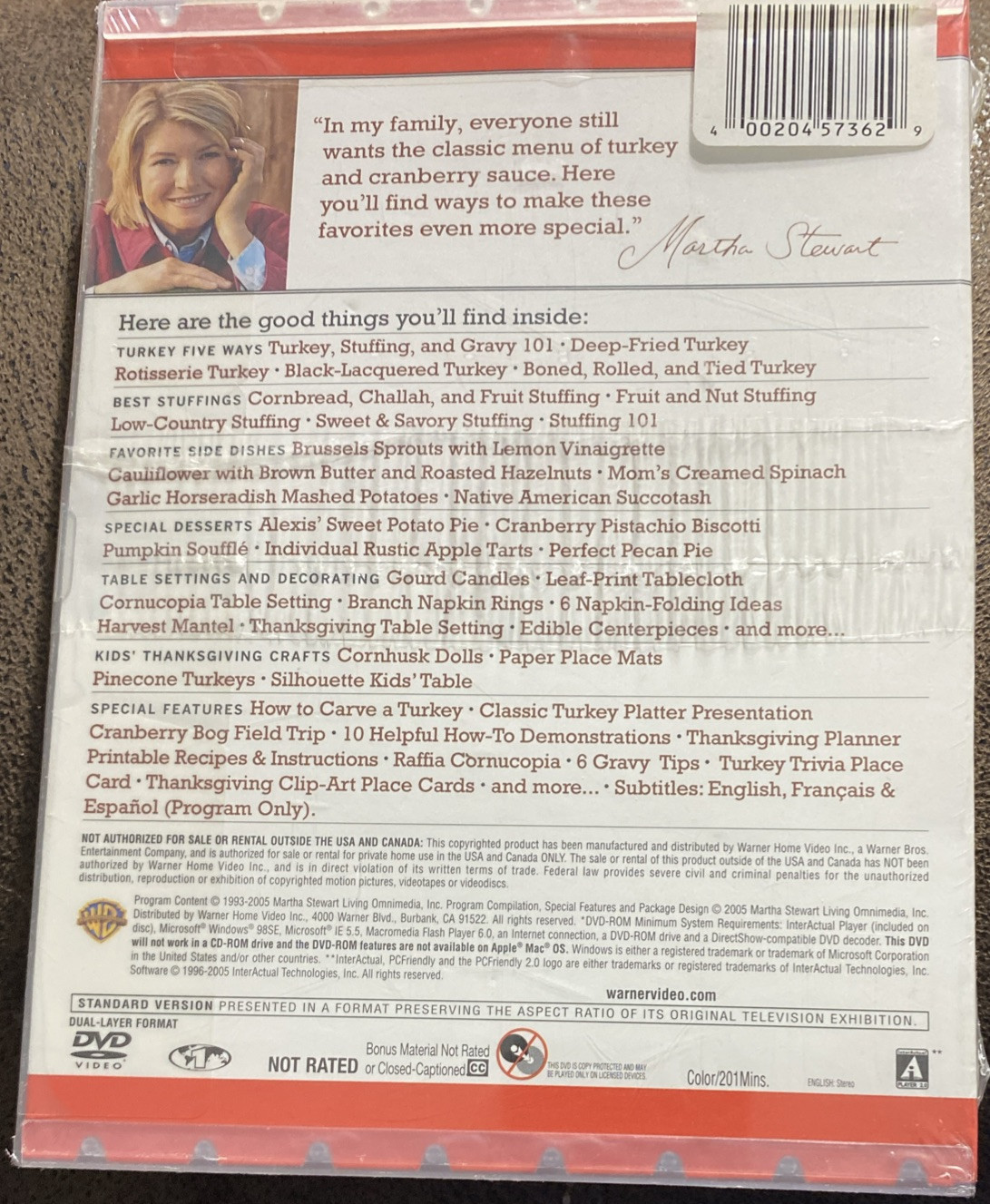 The Martha Stewart Holiday Collection - Martha's Classic Thanksgiving- NEW DVD