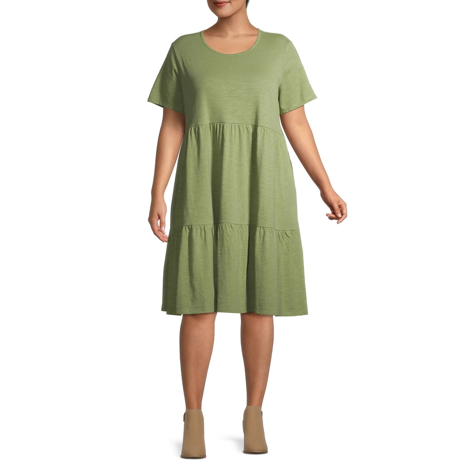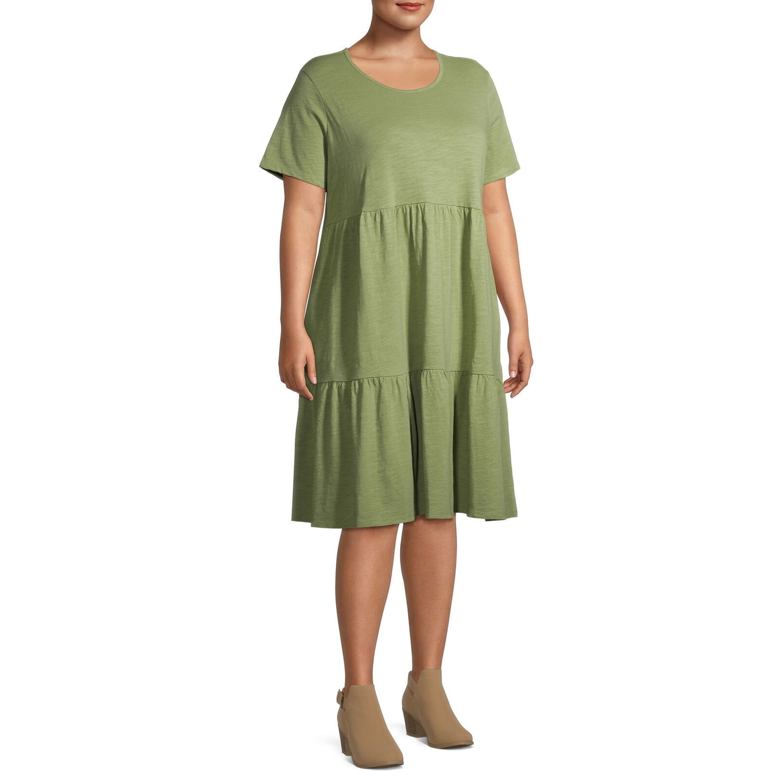 Terra & Sky Women's Plus Size Short Sleeves Tiered Dress Terrace Green OX (14W)