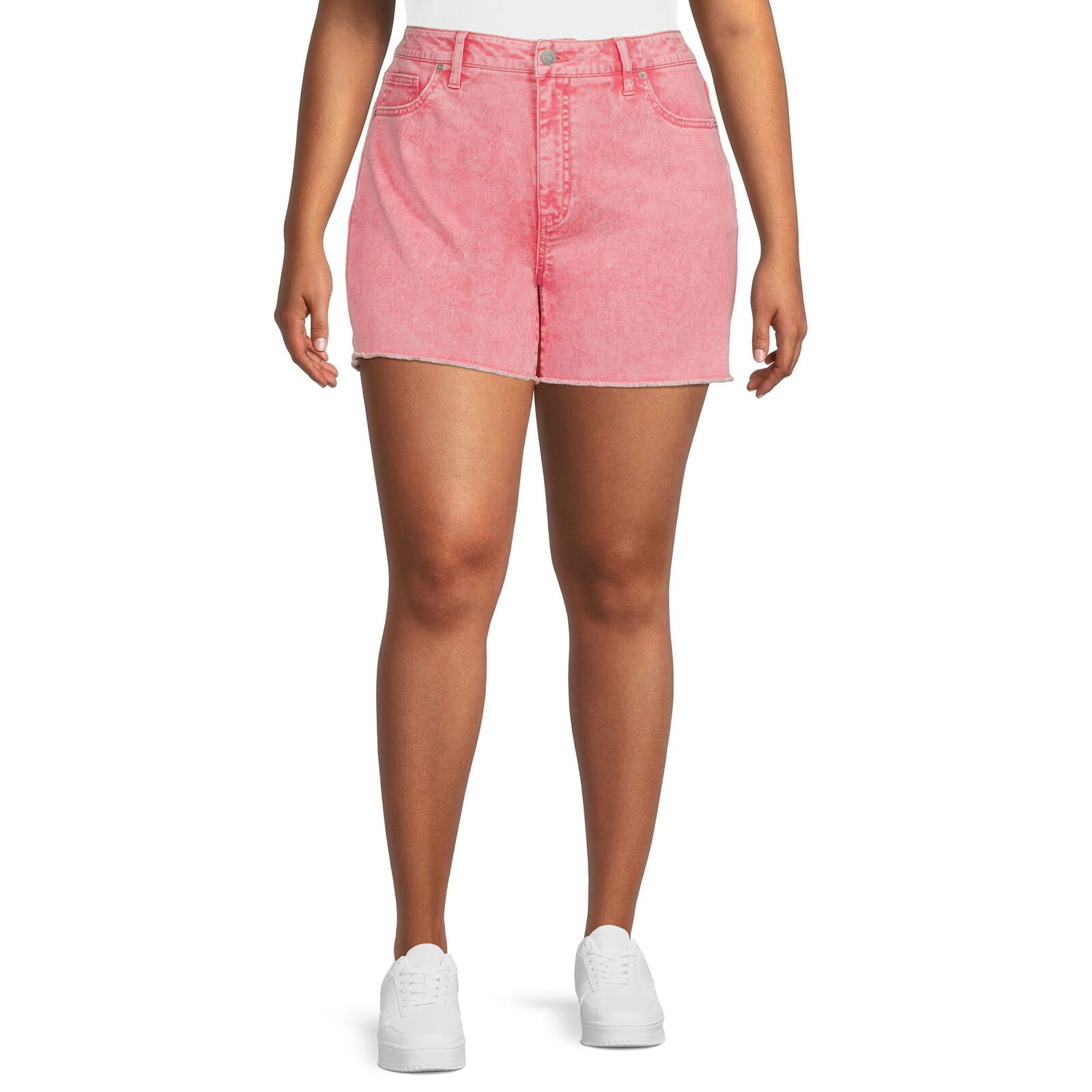 Terra Sky Women's Plus Size High Rise Cut Off Shorts Coral Rose Acid Size 22W