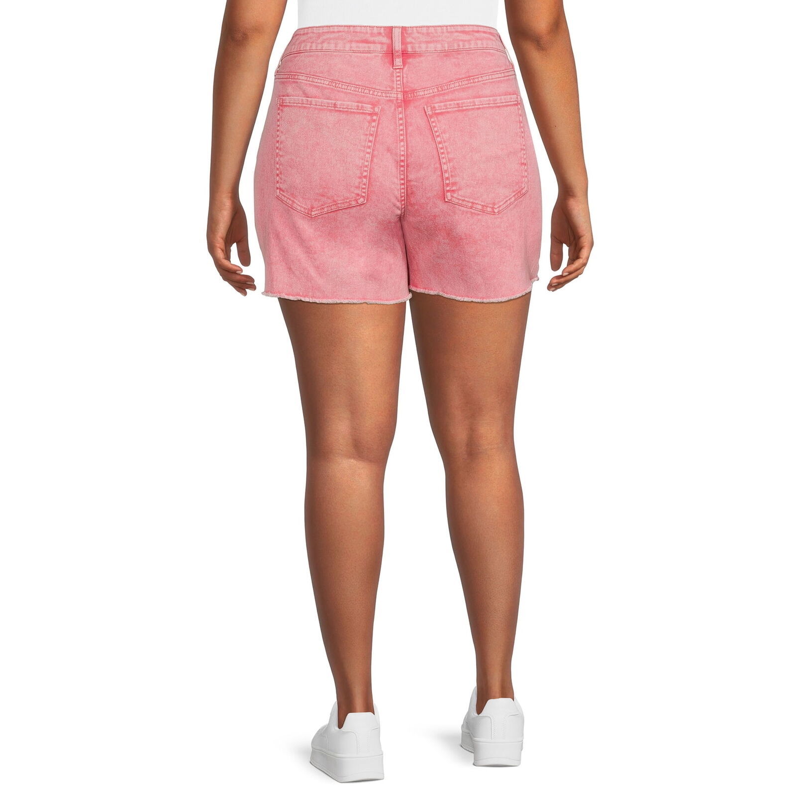 Terra & Sky Women's Plus Size High Rise Cut Off Shorts Coral Rose Acid Size 22W
