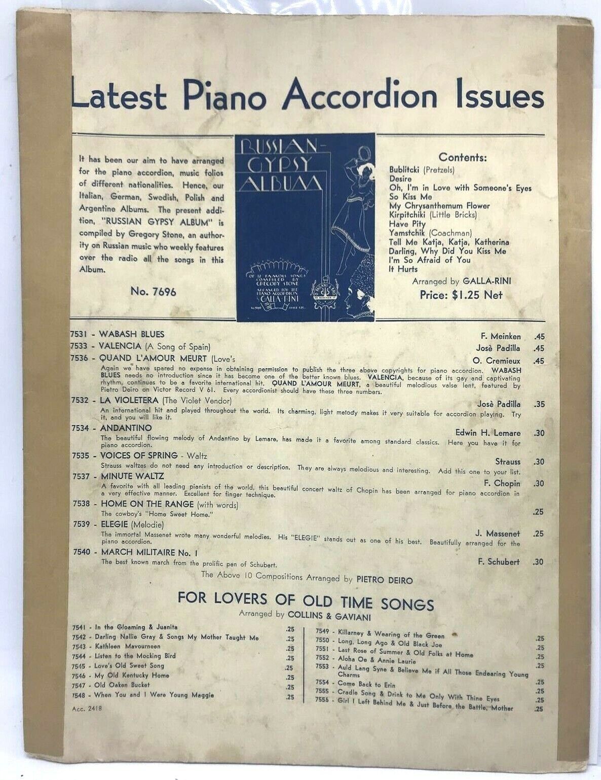 The sheet music may have wear, rips, tatters, and may have a split center seam, or other issues due to age, which should be expected.