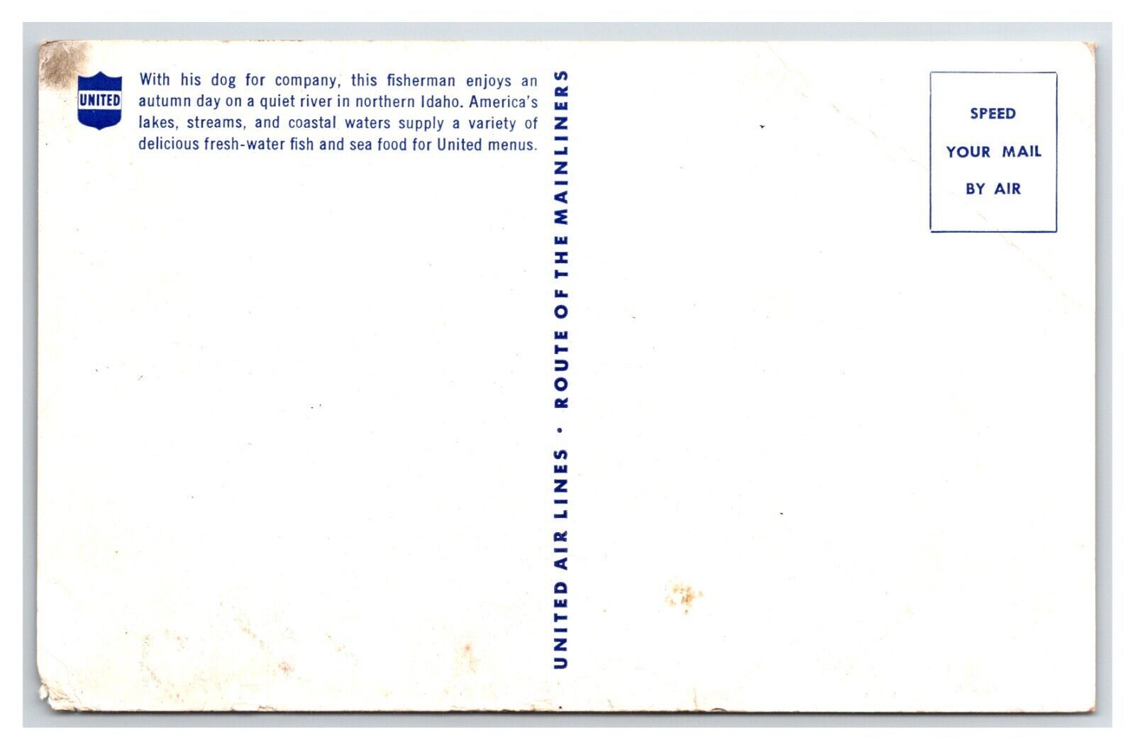United Airlines Issued In Flight Menu Lake Fishing UNP Chrome Postcard V15