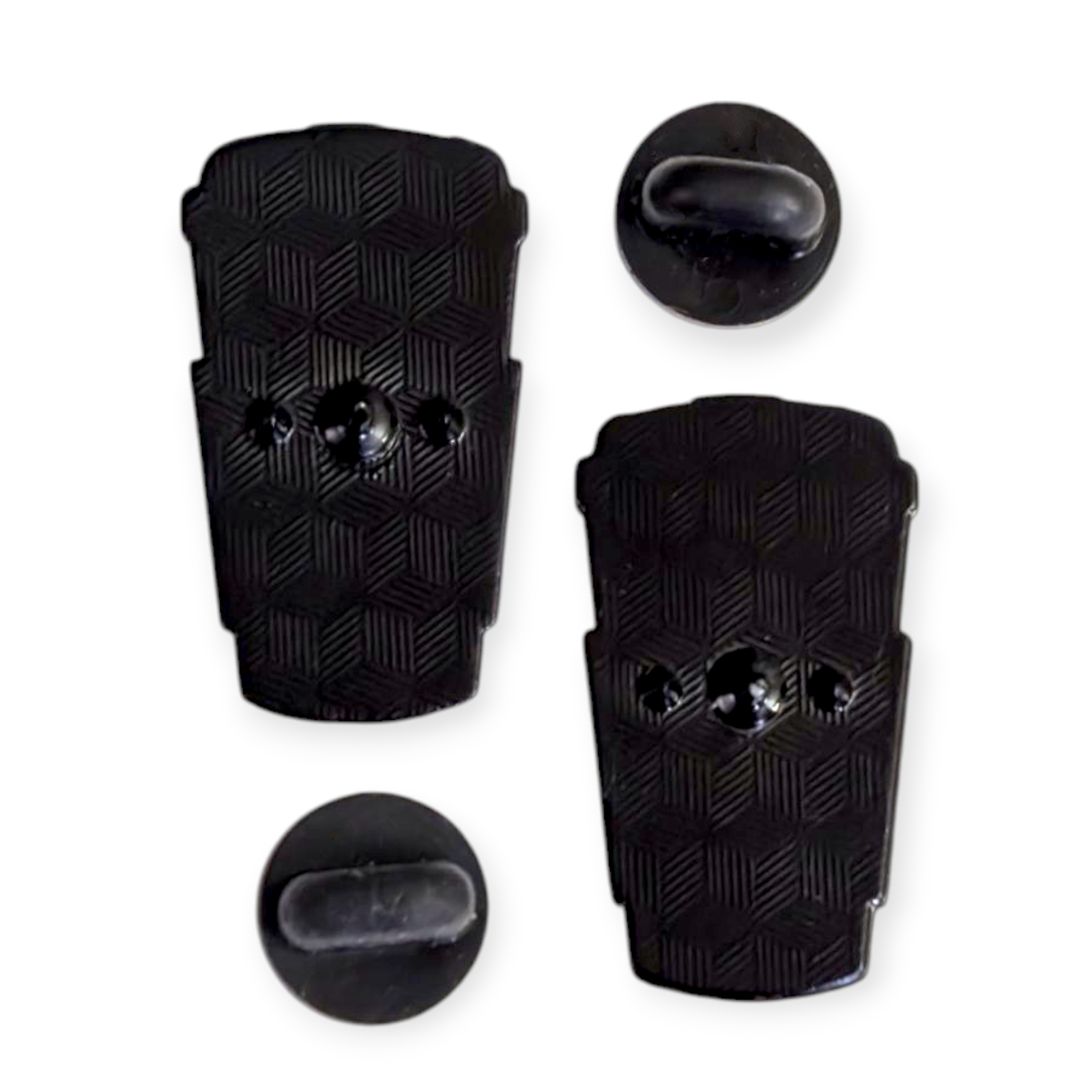 • Sculpted metal with enamel, and finished with rubber backs to keep secure.