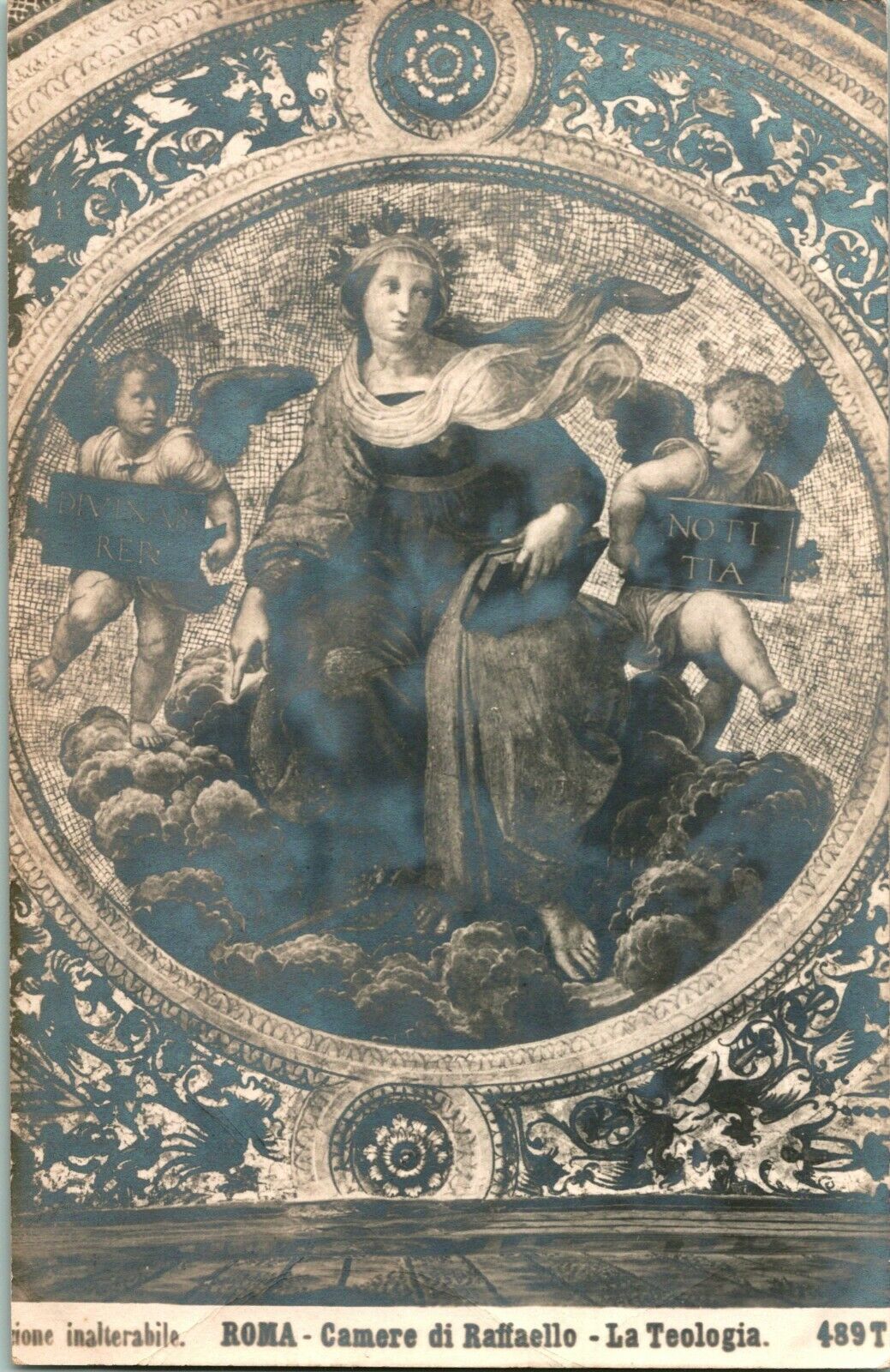 Vintage Real Photo Post Card RPPC Rome Roma Camere di Raffaello La Teologica