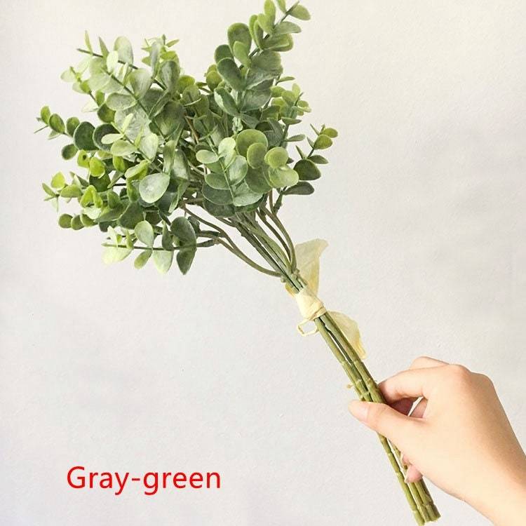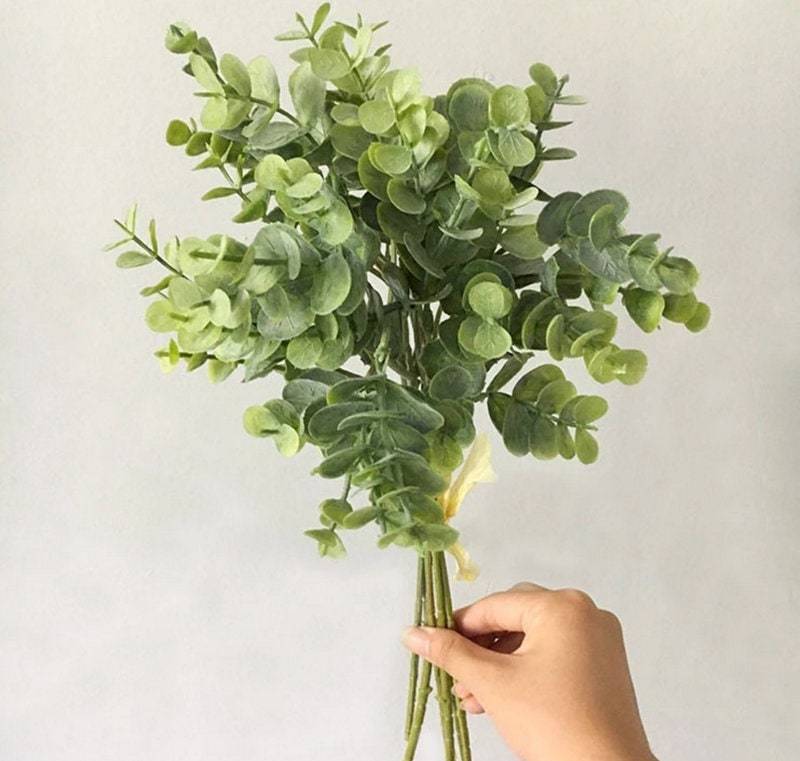 Usage: This is a little cucalyptus bouquet contains 6 single stem,Finding some trendy silk wedding greenery, like this artificial eucalyptus leaf bundle. These lush green leaves will look gorgeous in wedding centerpieces or home decor arrangements. Separate and use individually with your bouquet or centerpiece.