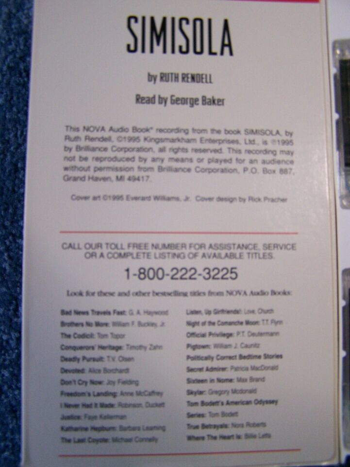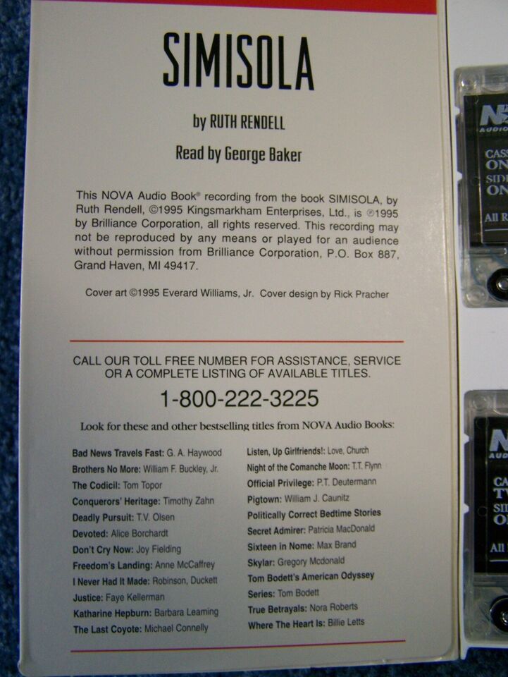 SIMISOLA - by Ruth Rendall - Cassette tape audio mystery