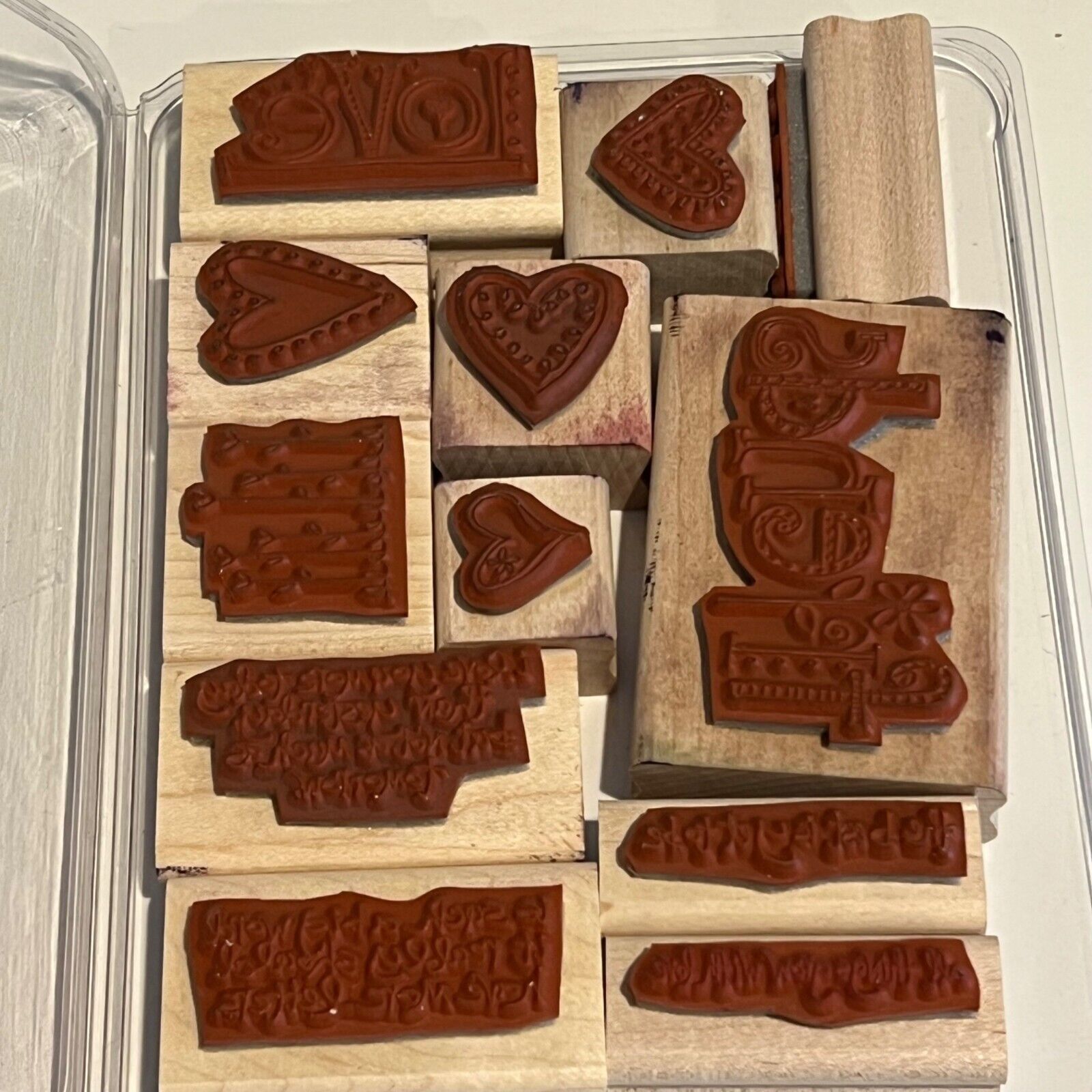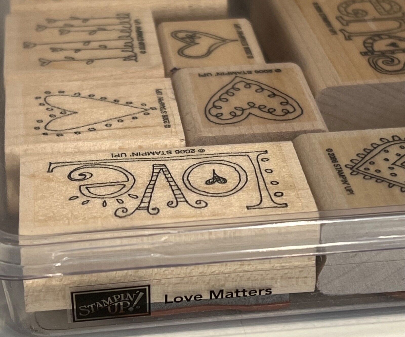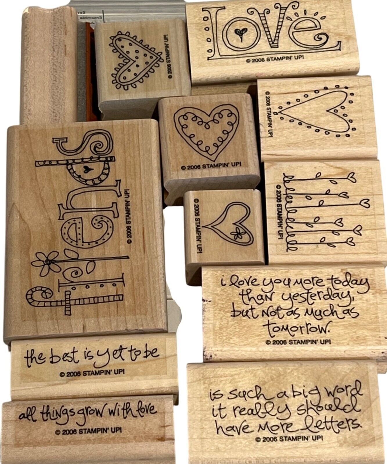Stampin Up! Love Matters Rubber Stamp Set Of 12 With Wooden Blocks For Crafting