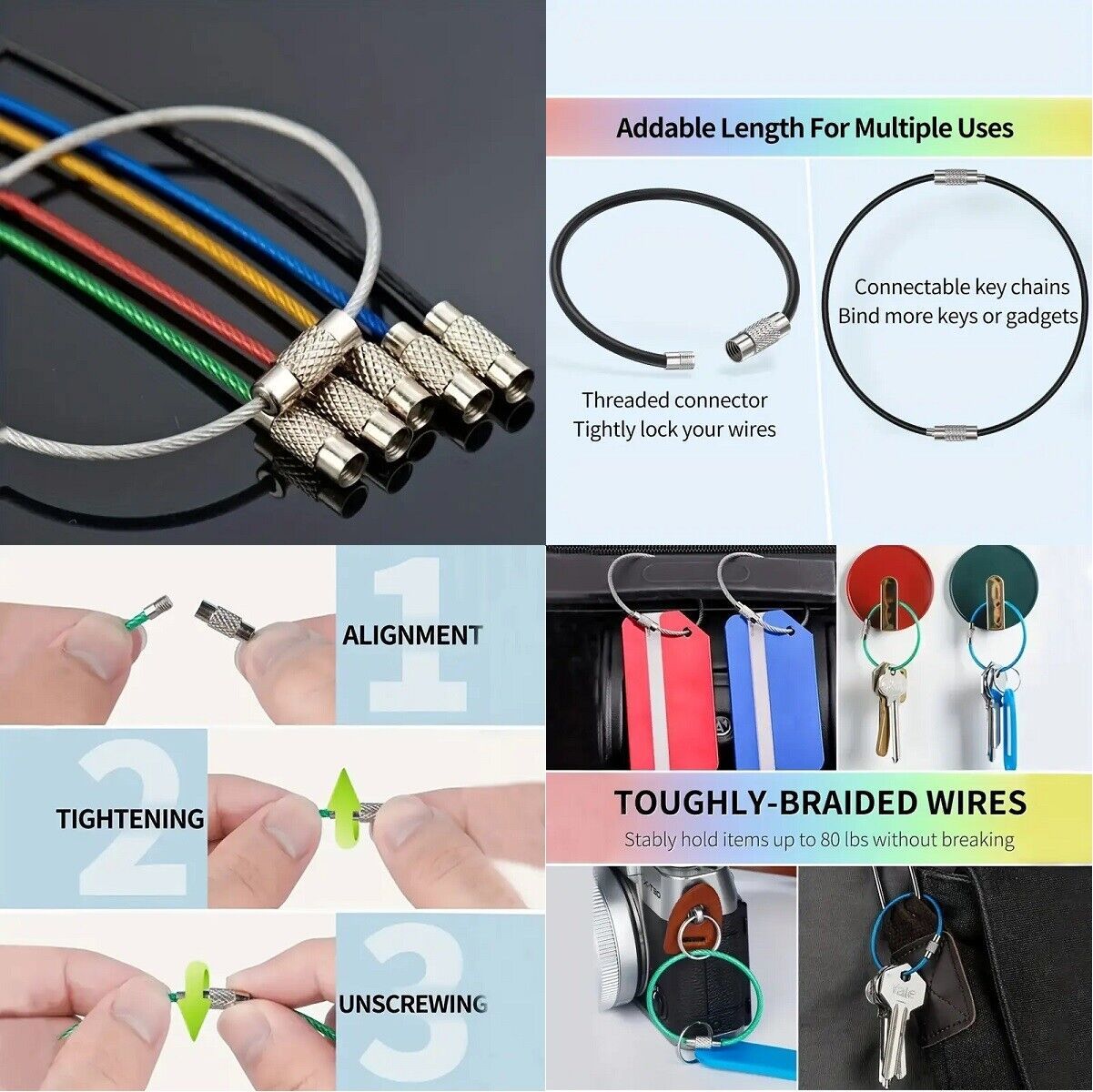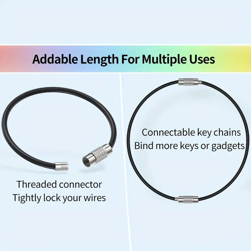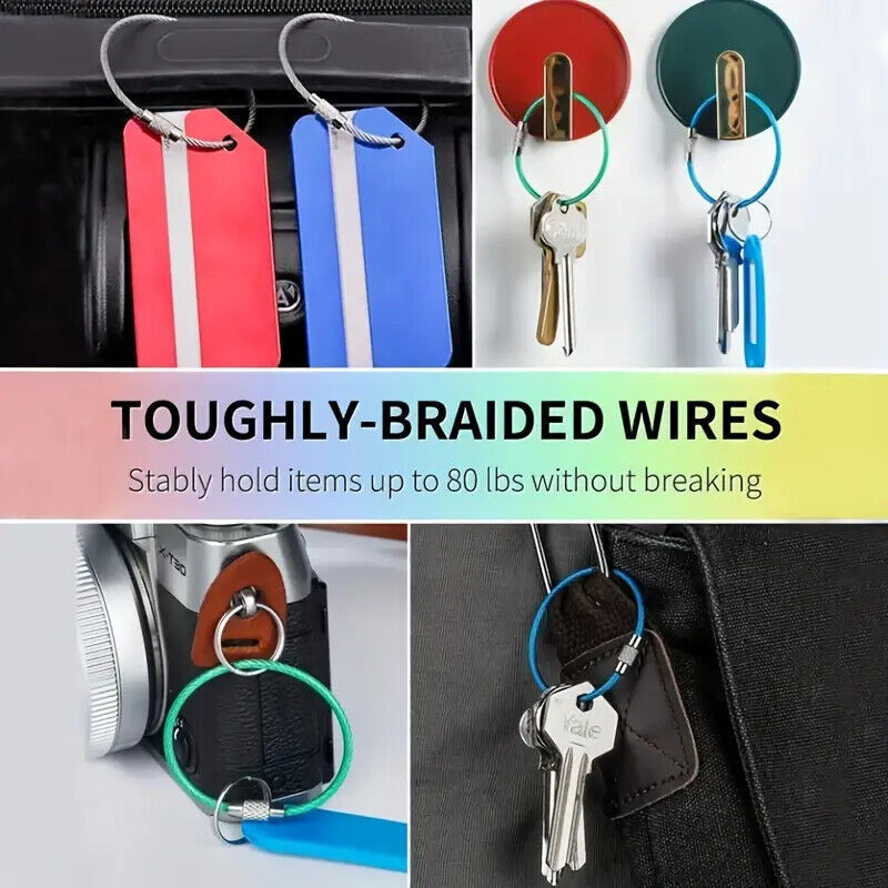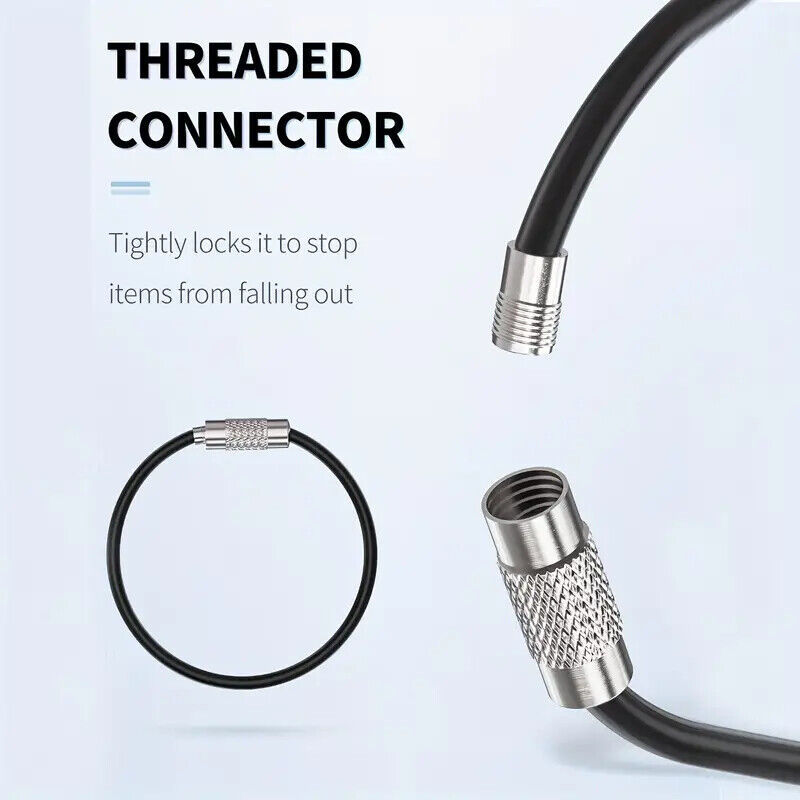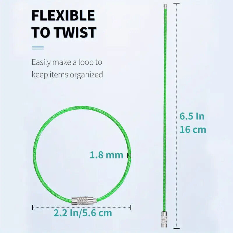 Keychain Cable Stainless Steel Wire EZ Secure Luggage Tag Hiking Multi Use 6"