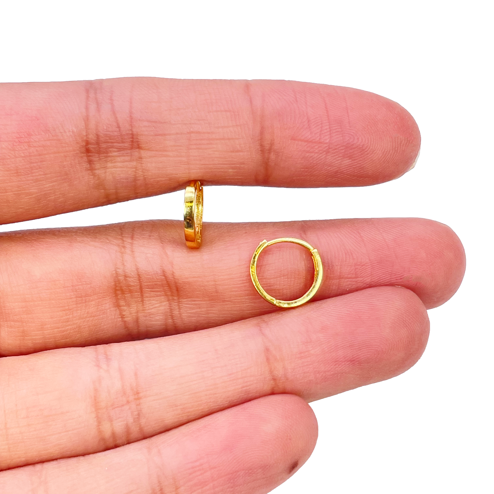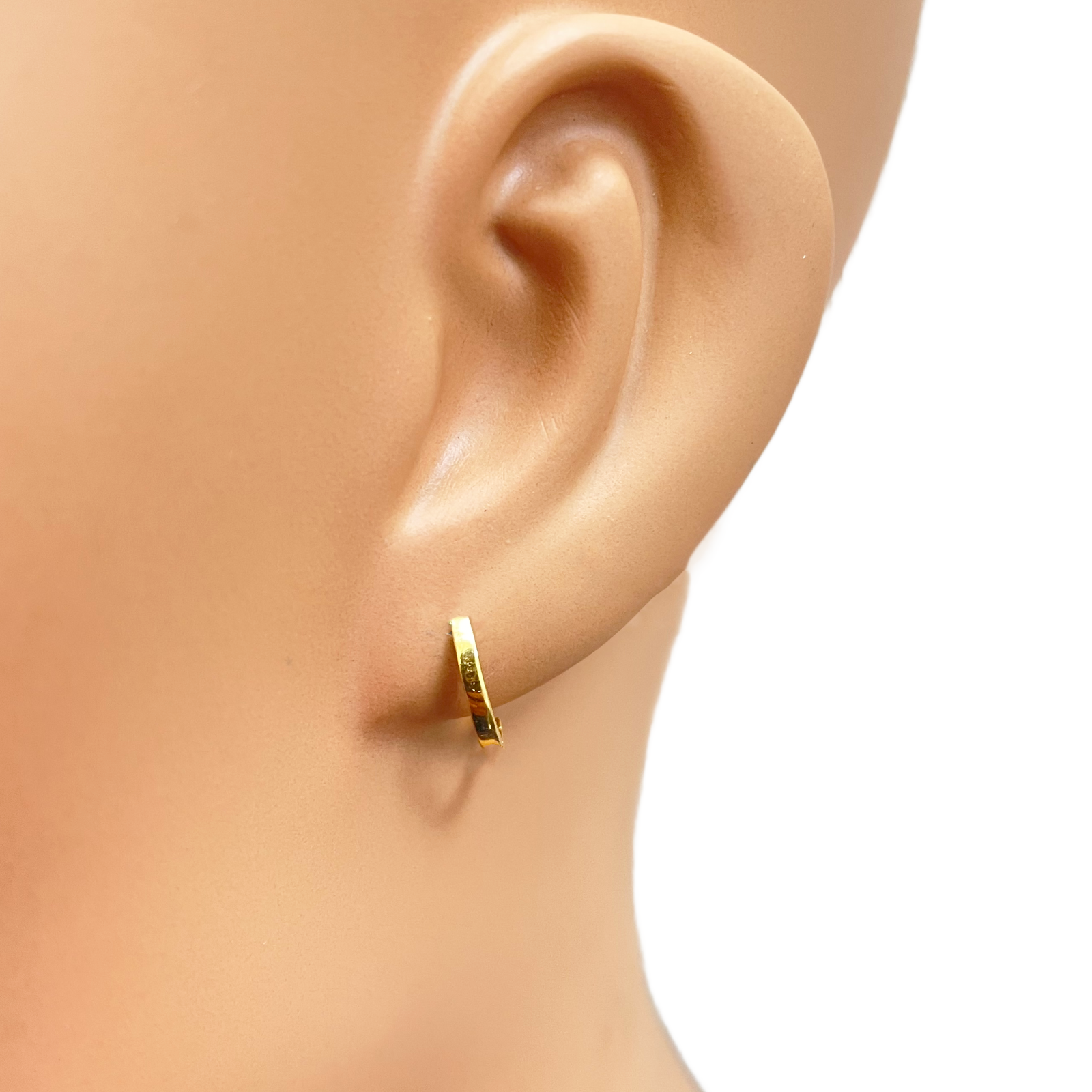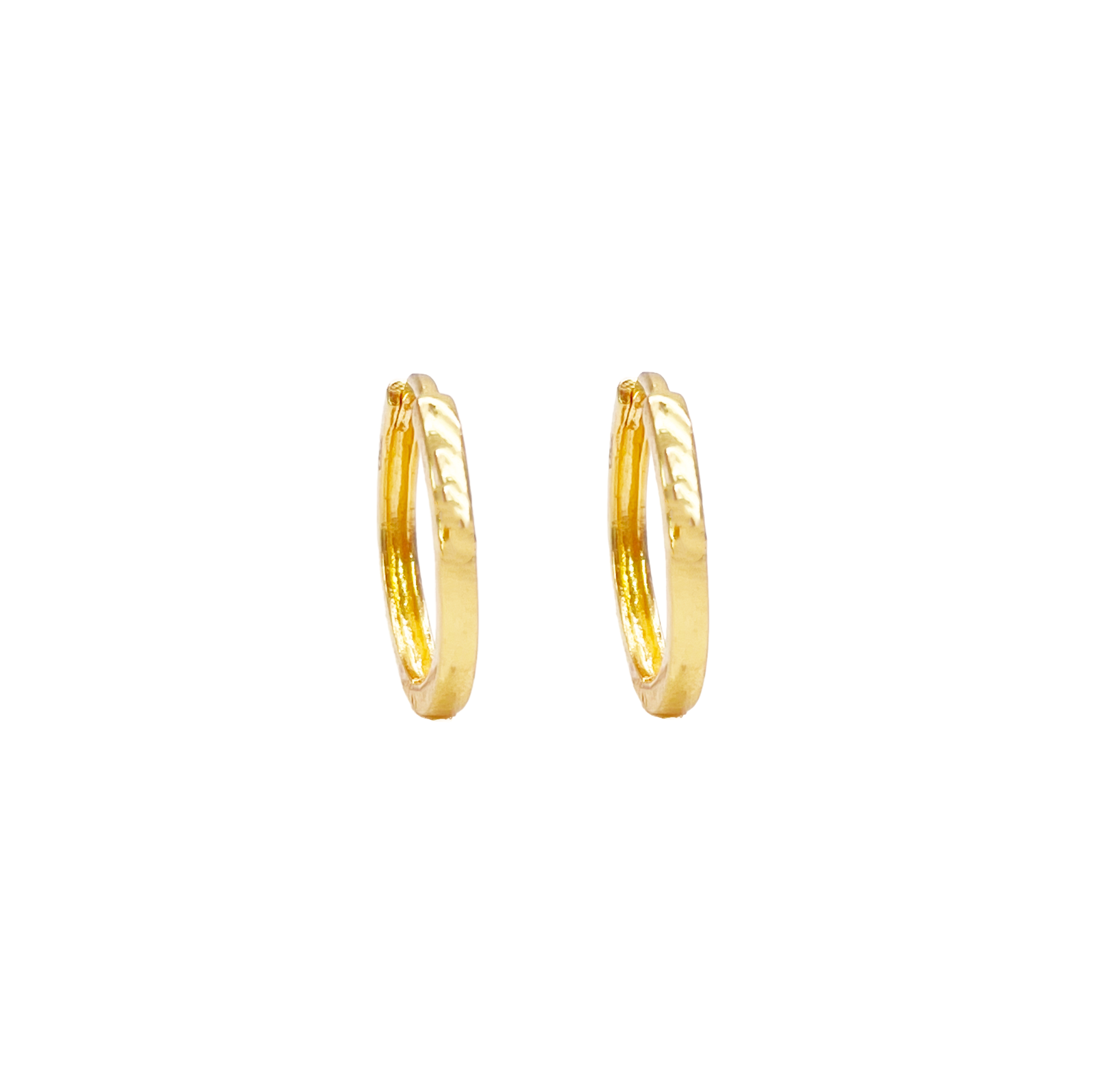 18ct Yellow Gold Pair Of High Polished Plain Hoop Huggie Earrings 8mm Diameter