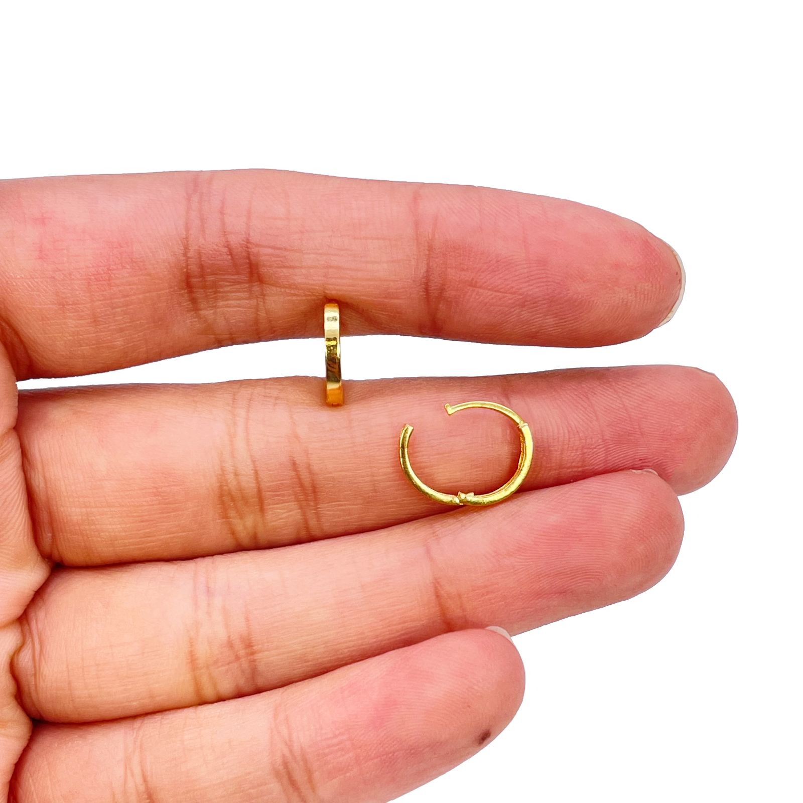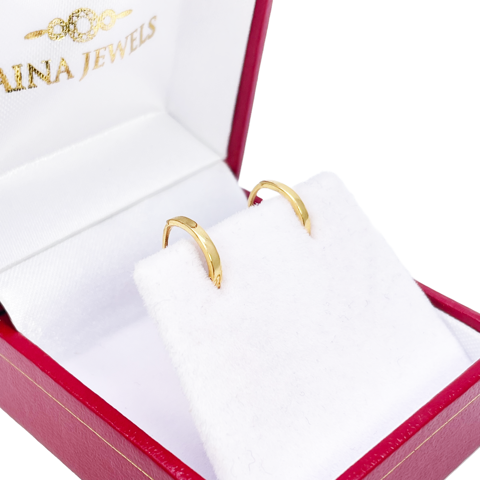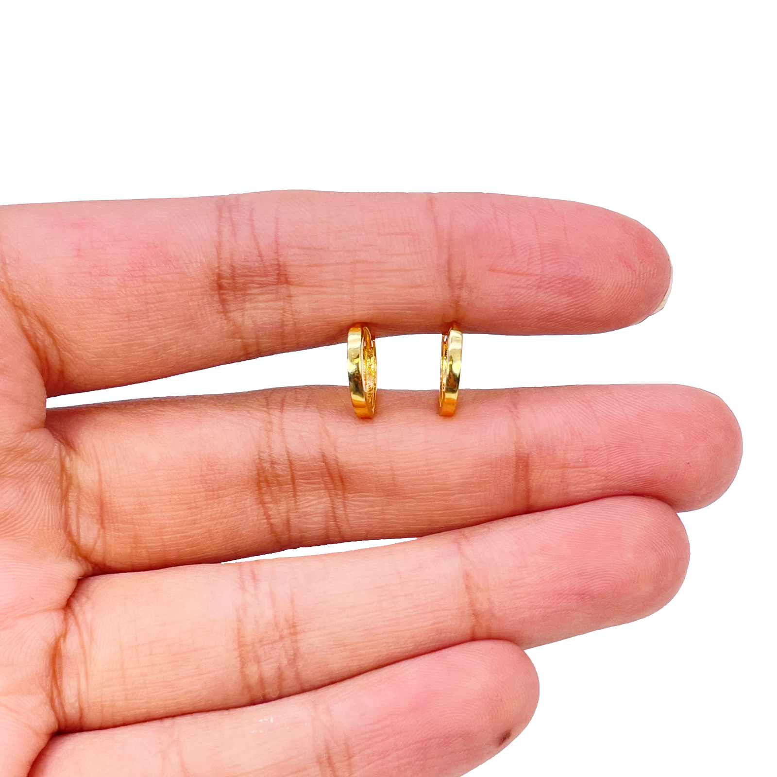 18ct Yellow Gold Pair Of High Polished Plain Hoop Huggie Earrings 8mm Diameter