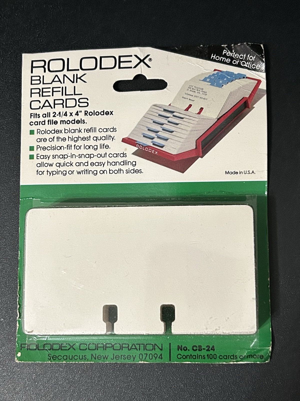 NEW! 100-count Rolodex blank refill cards. Fits all 2-1/4 x 4? Rolodex card file models.