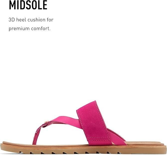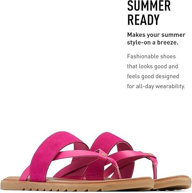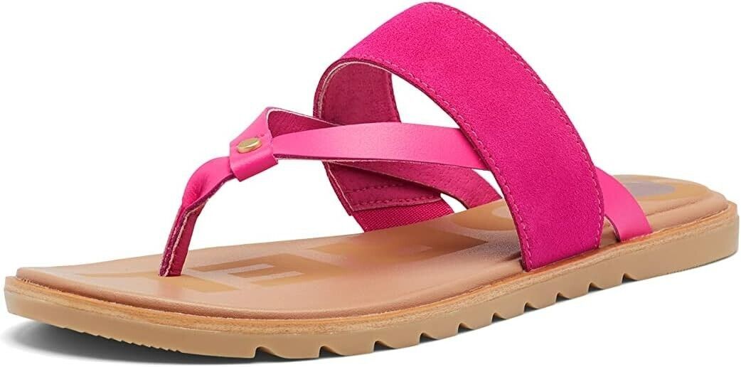 Sorel Women’s Ella II Easy Flip Fuchsia Fizz Leather Sandals Size 8